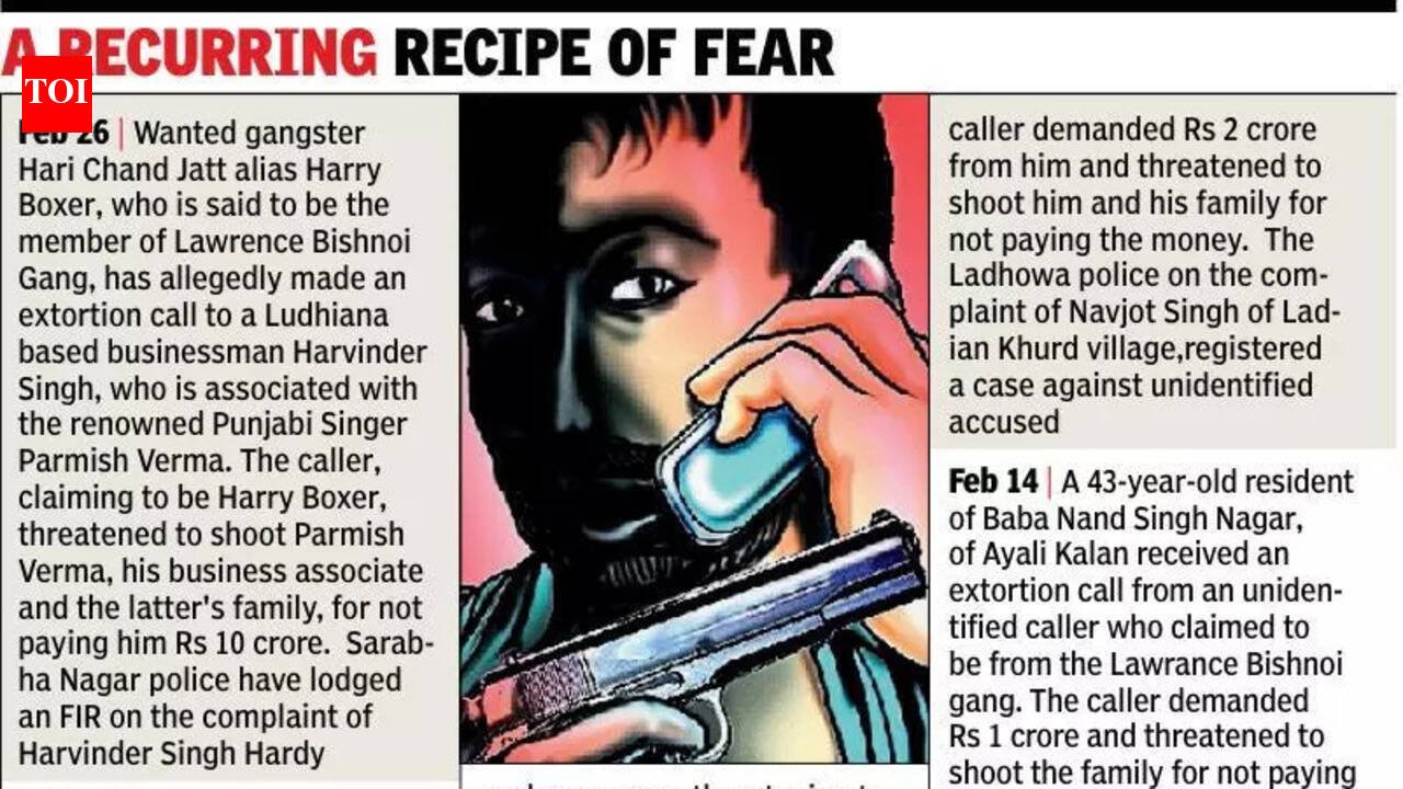 Ludhiana: One after another, city-based businessmen are receiving extortion calls either from the gangsters or from the unidentified people impersonating them. In yet another case a city-based businessman has received an extortion of Rs 20 lakh. The caller claimed to be Jaggu Lahoria, who is associated with gangster Dilpreet Baba. Talking about the action, the police could not do anything beyond registering a case.Gurpreet Singh, who owns the chain of famous Palji Bakery, said that he was at his shop located on Sat Paul Mittal Road (popularly known as Malhar Road), when a call was received from an international number. The call was attended by his staffer, and the caller introduced himself as Jaggu Lahoria. The accused demanded Rs 20 lakh as extortion and threatened to face dire consequences for not giving the money. Complainant added that the accused threatened to meet the fate of the owner of Sindhi Bakery, Rajguru Nagar, who was shot at by assailants for not giving extortion money, a few years ago.Immediately after disconnecting the call, Gurpreet Singh informed the police. Division Number 5 police have registered a case against unidentified accused under charges of criminal intimidation and extortion. In the past few months, several Ludhiana based traders and businessmen have received extortion calls. In some of the cases the police booked the gangsters by name, however in majority of the cases the FIRs have been lodged against unidentified accused. The police probe in all these cases have reached nowhere. If talk about the safety of the victims who received the extortion calls, the police have just asked them to stay alert.Traders hire pvt muscle amid rising threatsOne of the victims, who received an extortion call, a few days ago, shared with TOI, “The caller had threatened to shoot for not giving protection money. I have approached the police for protection but did not receive any positive response. Thereafter, I hired private security personnel for my family and myself.” When asked a senior police official, he said, “The police have recently busted a racket where the gangsters had involved local youths to gather information about the targets and to execute firing at their house. The police have arrested them all. Even some criminals sitting in different jails were brought on production warrants and were arrested, after their involvement was found. In the other majority of the cases, the callers are sitting abroad and in some cases the callers are using the names of gangsters.”