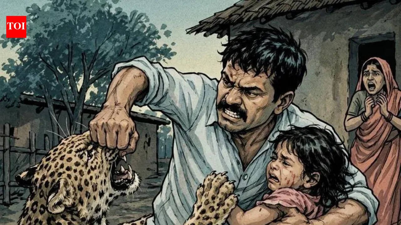 Vadodara: A tribal man from a tiny village in Chhota Udepur district displayed extraordinary courage, wrestling a leopard with his bare hands, forcing open its jaws and rescuing his four-year-old daughter from death.The incident took place in Rasli village of Pavi Jetpur taluka on Wednesday evening.The girl was playing in the backyard of her house while her mother was working nearby. In the fading light, a leopard crept in and suddenly pounced on her. The mother screamed for help and her father Suresh Rathwa rushed out. He was horrified and froze momentarily, but quickly gathered courage seeing his daughter in the grip of the animal which was trying to drag her away.Rathwa then launched a counterattack on the leopard, snatched the girl and repeatedly dealt body blows to the animal with the other. “The leopard refused to back off and repeatedly tried clawing into Rathwa, who tightly clutched his daughter with the other hand during the few minutes of intense face-off,” said Jaydeep Solanki, range forest officer, Pavi Jetpur.Ultimately, the leopard loosened its grip, released the girl and fled into the fields behind Rathwa’s house.“Rathwa showed a lot of courage. Villagers have spotted leopards in the area earlier, but this was first attack on a human here,” Solanki told TOI.Officials said the girl suffered grievous injuries to her face and neck but she is responding well to the treatment in a local hospital.“The animal likely strayed into the village from a nearby river ravine in search of food,” he said.Locals claimed the leopard was seen again a few hours after the incident and three cages along with trap cameras have been installed around the village to track and capture it.