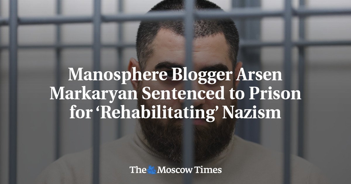 A judge in Moscow sentenced manosphere blogger Arsen Markaryan to 4.5 years in prison on Thursday after he was found guilty of “rehabilitating” nazism.
