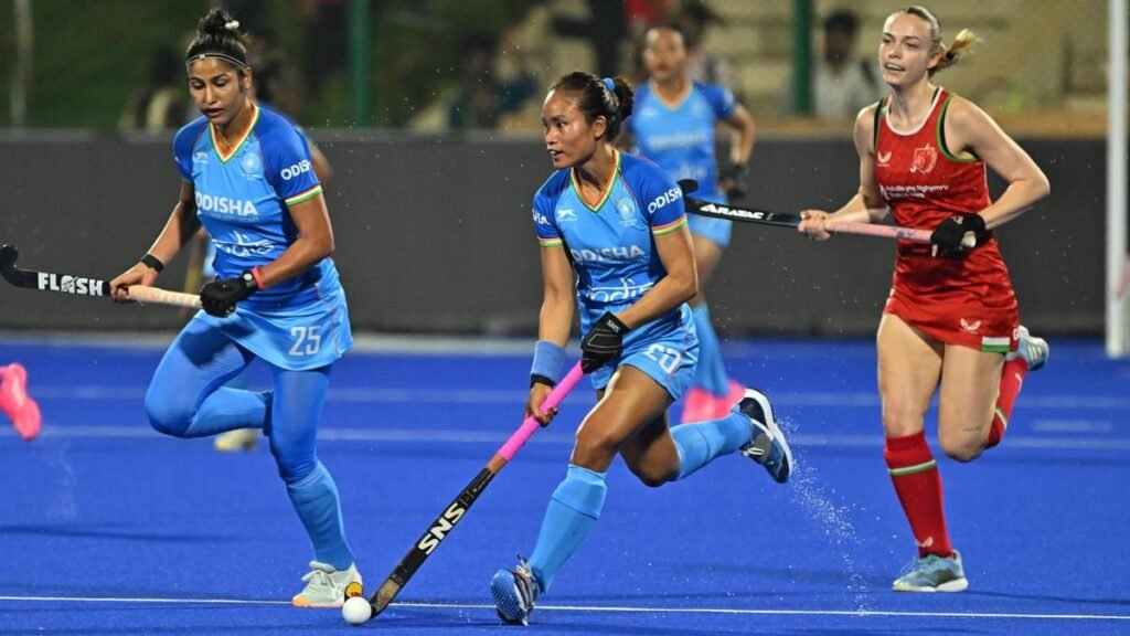 Having already secured a spot at this year’s FIH Women’s World Cup ahead of the clash with Wales, India produced its most fluid and attacking display of the ongoing Qualifiers at the G.M.C. Balayogi Hockey Ground here on Wednesday. The host built on it with a convincing 4-1 victory, sparking celebrations in front of a healthy turnout of fans who shared in the team’s joy.