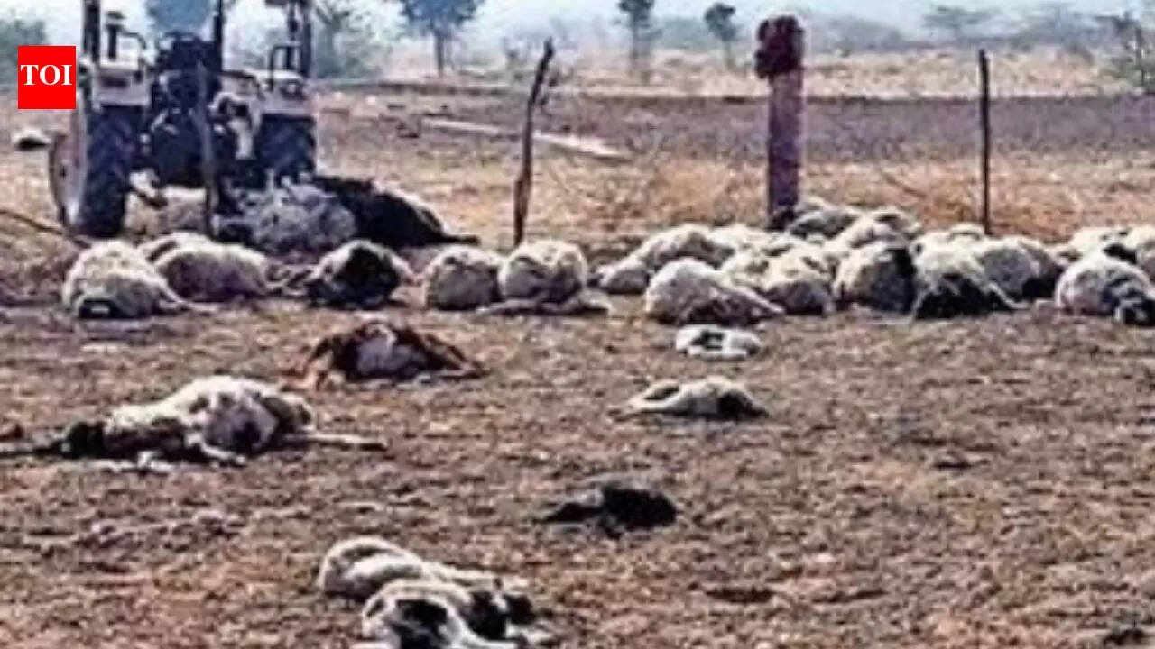 JAISALMER: At least 150 sheep were found dead after an overnight attack by suspected wild animals in Raghva village of Ramgarh, a border area of Jaisalmer district, officials said Monday. The incident occurred at Derawar Singh’s Dhani, where a flock was kept inside an animal enclosure. The herder Deravar Singh discovered the carcasses in the morning, with blood-soaked sheep lying across the enclosure. Villagers said the scale of the killing suggested the involvement of more than one animal. They reported deep bite marks on the necks and bodies of the sheep. As the word spread, residents gathered at the site. Revenue officials reached the spot and prepared a damage assessment report. Ramgarh police and forest department teams were informed, and forest officials began examining pugmarks to identify the species involved. A veterinary hospital team conducted post-mortem examinations at the site. Ramgarh police station in-charge Bhutaram Vishnoi said police inspected the area and alerted the forest department. “As per preliminary probe, it appears to be an attack by feral dogs. We will get a clear assessment only after the post-mortem and the forest department probe,” the police officer said. Villagers demanded compensation for the affected family, saying the flock was primary source of livelihood.