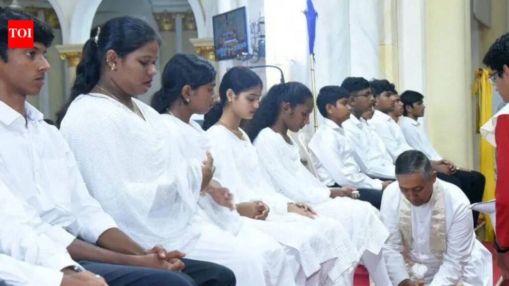 Udupi: Christians in Udupi diocese observed Maundy Thursday (Holy Thursday) to commemorate the Last Supper of Jesus Christ with his apostles.Apostolic administrator of Udupi diocese, Gerald Isaac Lobo, celebrated the mass at Milagres Cathedral in Kallianpur along with Msgr Ferdinand Gonsalves, rector of the cathedral and also vicar general of the diocese. Fr Pradeep Cardoza, assistant parish priest, and Sampada director Fr Reginald Pinto were present.In his message, the bishop spoke about Holy Thursday, reminding us that it is a symbol of the Lord’s Supper, service and love. “Holy Thursday is not just a day of worship; it is a special moment to live and embrace human values. Just as Jesus served by washing the feet of his disciples, we too should cultivate a humble attitude in our daily lives, helping others with kindness,” he added.Thereafter, the bishop washed the feet of laypersons, recalling the washing of the feet of 12 apostles by Jesus Christ. At the end of the mass, the Holy Eucharist was taken ceremoniously to the florally decorated Altar of Repose. The reverential transfer of the Holy Eucharist to the Altar of Repose was followed by the adoration.Maundy Thursday is followed by Good Friday, the day on which the crucifixion and death of Jesus Christ is commemorated. The Way of the Cross to commemorate the Passion of Christ is one of the most important rituals of the Good Friday ceremonies at Catholic churches.In Thottam St Ann’s Church, the Last Supper of Jesus Christ was observed in a special manner. As the current year is being observed as the ‘Year of the Poor’ in the Udupi diocese, 12 special individuals from the Thottam parish were identified. Parish priest Rev Fr Denis D’Sa washed their feet, recalling the message of humility demonstrated by Jesus Christ.On the occasion, Church Pastoral Council vice-president Leslie Aroza, secretary Lavina Fernandes, coordinator of the 20 Commissions Shanthi Fernandes, local convent superior Sister Sushma and devotees were present.