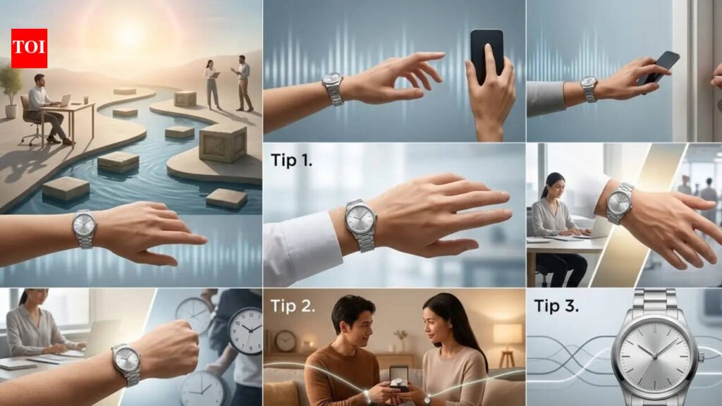Tip 1: Wear a simple metallic watch with a round or oval dial (Right hand, dial inward)