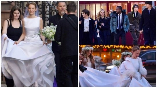 Maya and Christian, along with their guests and bridesmaids, were clicked on the streets of New York City, probably after the ceremony took place at the church. Apart from the Stranger Things reunion, the wedding also had Maya’s famous parents — dad Ethan Hawke and mom Uma Thurman — in attendance. The wedding marked a rare public appearance for her separated parents, who were married from 1998 to 2005.