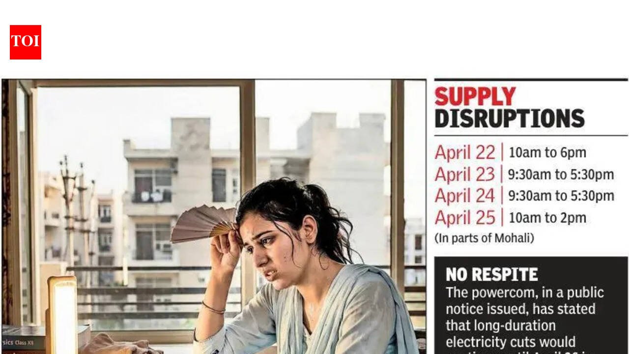 Mohali: The residents of Mohali are grappling with prolonged power outages lasting 4-8 hours from the last four days, even as the meteorological department has issued a yellow alert warning of intense heat wave across Punjab.According to the schedule released by the Punjab State Power Corporation Limited (PSPCL), power supply disruptions are planned as follows: April 22 (10am to 6pm), April 23 (9:30am to 5:30pm), April 24 (9:30am to 5:30pm), and April 25 (10am to 2pm) in many parts of Mohali district. The powercom, in a public notice issued, has stated that long-duration electricity cuts would continue until April 26 in major cities of the state, including Mohali, Ludhiana, Jalandhar, Amritsar, Bathinda and Patiala. The power utility has attributed the outages to ongoing work aimed at strengthening and modernising the electricity distribution system. The officials said the staggered schedule had been designed to facilitate infrastructure upgrades, adding that while efforts would be made to minimise disruption, residents were likely to face extended day-time outages. The power cuts have triggered concern among residents, particularly in view of rising temperatures and heat wave conditions. Many have expressed frustration over the timing and duration of the outages. “We are already dealing with extreme heat and these long power cuts are making it unbearable, especially for children and the elderly,” said Jagdev Singh, a resident of Mohali’s Phase-VII. Amrik Singh from Phase 3B2 said, “There should have been better planning. At least during peak summer, essential services like electricity must be ensured without such long interruptions.” Several residents also highlighted the impact of these power cuts on daily routines. “Work from home has become difficult and even basic activities like cooking and accessing water are affected,” said a Mullanpur resident. With temperatures expected to remain high in the coming days, the residents have urged the authorities concerned to reconsider the schedule or provide alternative arrangements to minimise inconvenience during the heat wave.