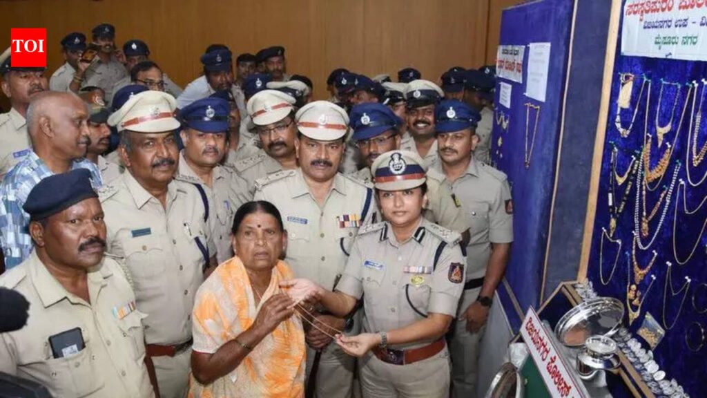Mysuru: Mysuru city police solved 104 property offence cases in the last six months and recovered valuables and cash worth Rs 2.9 crore from 82 arrested accused. Wednesday, the property was returned to its owners during a property parade at the commissioner of police office.Commissioner of police Seema Latkar, who appreciated police officers and presented certificates, detailed three notable cases solved after examining evidence, including one involving an accused from Andhra Pradesh.She said National Intelligence Grid, a centralised database of listed criminals, helped city police crack three thefts reported in Kuvempu Nagar by arresting Venkata Reddy. He allegedly used digital maps to locate isolated houses in upscale areas and targeted them at night. He allegedly used crowbars to break into three palatial houses but managed to steal only a paltry sum. CCTV footage showing a man holding a crowbar helped police identify and arrest him, she said.In another case, Vidyaranyapuram police arrested Kiran, an ITI college staffer, who lifted valuables from a neighbour’s house. A message from a finance firm about pledged gold helped alert police. He was allegedly deeply in debt and cleared a Rs 30 lakh loan he had taken by turning to crime. He borrowed money to lead a lavish lifestyle and ended up in jail, the IPS officer said.Saraswathipuram police, led by inspector G Purushotham, solved nine house break-ins by arresting Syed Alim, a former autorickshaw driver who allegedly turned to crime. About 69 theft cases are pending against him, including nearly 49 in the city. He was out on bail but allegedly continued his crimes and was arrested again, police said.Rani, a car owner, thanked the city police for tracing her stolen car within two days. She said CCTV footage helped Vijayanagar police, led by inspector Suresh Kumar SD, quickly track down the thief. Mandi police, led by inspector Diwakar, also solved an extortion case in which a Bengaluru resident was robbed of valuables and a car worth Rs 10 lakh.BOX** 16 accused in NDPS cases and 1 involved in goonda activity were banished from Mysuru city since 2025.** About 30kg ganja and 311mg ynthetic drugs were seized in 22 NDPS cases in 2026. Udayagiri police alone seized 24kg of ganja from accused Varun.** 2kg gold, 5kg silver, and Rs 10 lakh cash were recovered from 82 arrested accused in 105 cases in the last 6 months.** 4 extortion cases, 2 chain-snatching cases, 3 thefts by servants, 57 vehicle thefts, and 1 robbery case were solved, along with 79 property thefts, in the last 6 months.
