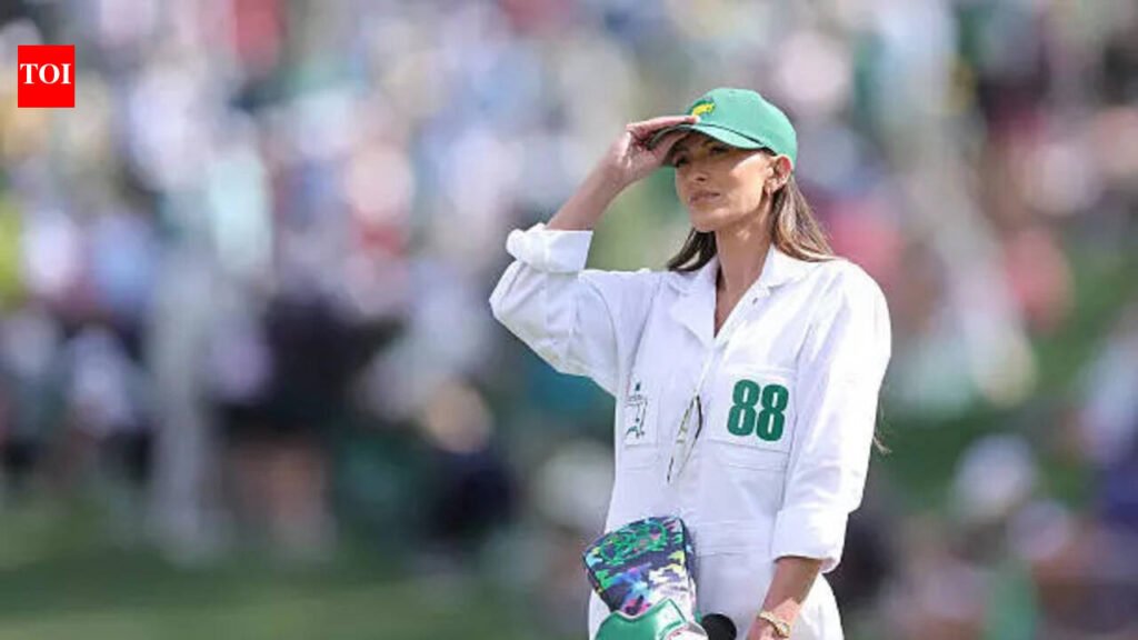 Wife of Dustin Johnson of the United States, Paulina Gretzky, looks across the second hole during the Par Three Contest prior to the 2025 Masters Tournament at Augusta National Golf Club on April 09, 2025 in Augusta, Georgia. (Photo by Andrew Redington/Getty Images)