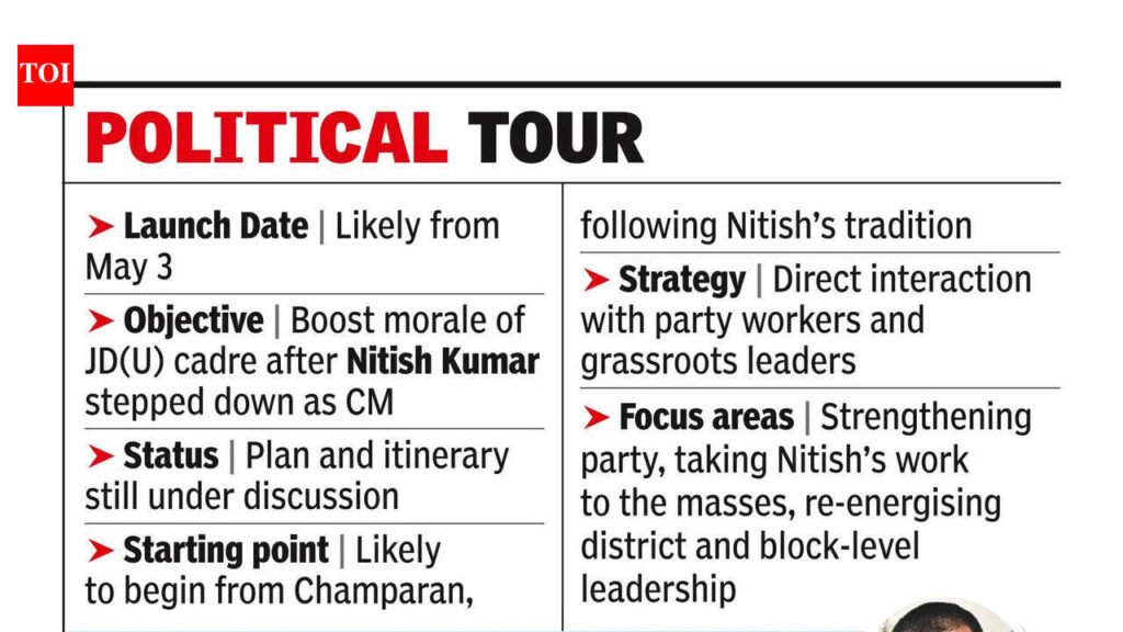 Patna: More than a month after he joined the JD(U), Nishant Kumar, the son of former CM Nitish Kumar, on Tuesday announced that he is likely to go on a statewide tour of the state from May 3. The move is aimed at boosting the morale of the party rank and file feeling “dejected” after his father stepped down as the CM earlier this month.Nitish too had undertaken several yatra and his journey as the CM for Bihar too preceded the yatra and ended with the same.Nishant, who joined the party on March 8, shortly after his father filed his nomination for the Rajya Sabha seat in the presence of Union home minister Amit Shah, revealed his plan before the media on Tuesday after holding a meeting with the party workers in the JD(U) office.“We are still discussing the plan, but will probably embark on yatra from May 3,” Nishant told reporters. He added they are still discussing with the party workers about the yatra’s itinerary and also the name of the yatra. “We are discussing all the aspects with Sanjay uncle (apparently hinting towards party’s national working president Sanjay Kumar Jha) and party workers,” he added.JD(U) sources said that, quite like his father, Nishant too is expected to start his yatra from Champaran, the place from where Mahatma Gandhi launched his first Satyagraha. Party workers said the move is expected to give a new boost to the party workers who were feeling dejected after Nitish stepped down as the CM earlier this month.Nitish too had launched all his yatras from Champaran itself. Nitish, whose career as the CM preceded with “Nyay Yatra” in 2005, launched as many as 16 yatras during his tenure as the CM. They included Vikas Yatra and Dhanyavad Yatra (2009), Pravas Yatra and Vishwas Yatra (2010), Seva Yatra (2011), Adhikar Yatra (2012), Sampark Yatra and Sankalp Yatra (2014), Nishchay Yatra (2016), Vikas Samikasha Yatra (2017), Jal-Jeevan-Hariyali Yatra (2019), Samaj Sudhar Yatra (2021), Samadhan Yatra (2023), Pragati Yatra (2024) and Samriddhi Yatra (2026).Nishant’s plan to embark on yatra follows his extensive meeting with the party workers for the past over a week at the JD(U) office. On Tuesday as well, Nishant held a meeting with the district presidents and block presidents of Kaimur, Rohtas, Buxar, Bhojpur, Ara nagar, Arwal, Jehanabad, Aurangabad, Gaya, Gaya nagar and Nawada. At the meeting, he asked the party office-bearers to take his father’s works to every person and strengthen the organisation through their active involvement.