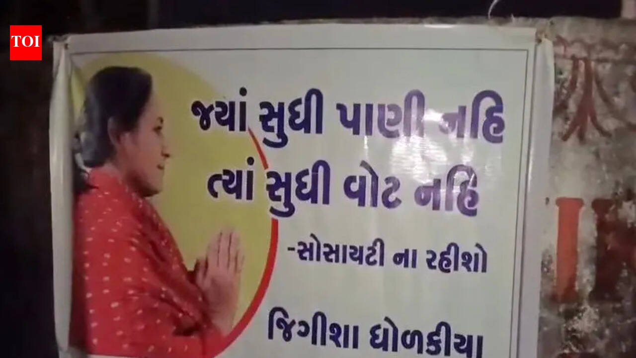 Vadodara: As civic elections draw near, residents of a Nizampura housing society have turned their long-standing water woes into an electoral protest, giving a call to press NOTA and putting up a stark ‘No water, no vote’ banner.Residents of Asmita Park Society in the Nizampura area raised the banner on Thursday night, flagging years of inadequate water supply. They said the society has been grappling with low water pressure for nearly a decade despite repeated complaints to authorities.According to residents, they have approached local corporators, the mayor and other officials several times and were assured that the issue would be resolved. Officials of the Vadodara Municipal Corporation also visited the society on multiple occasions following their representations, but no concrete work was initiated, they alleged.The society comprises around 60 houses. Residents said that while there is sufficient water supply in the surrounding areas, their society continues to be deprived, prompting them to escalate their protest ahead of the polls.