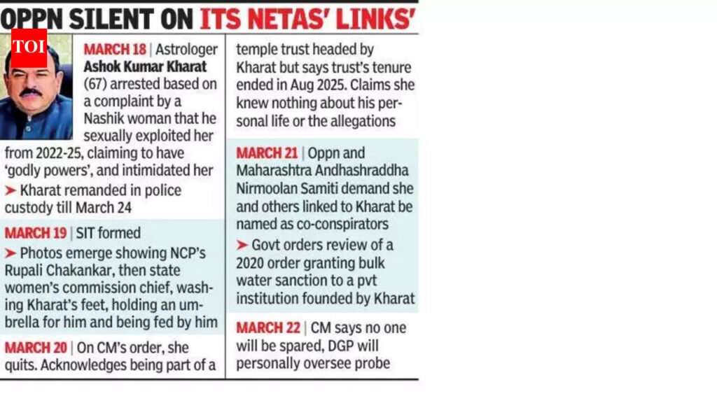 Nagpur: Maharashtra chief minister Devendra Fadnavis on Sunday said the SIT probing the rape-accused astrologer Ashok Kharat case is being monitored at the highest level and that no one will be spared regardless of political affiliation, while dismissing opposition attempts to give the case a political colour.Fadnavis said he has directed the director general of police (DGP) to monitor the probe. “This is a matter of women’s dignity. No one will be spared under any circumstances,” he said.The CM said more women are now coming forward with complaints, adding investigators are encouraging victims to speak up by reassuring them and their families. “We are aware that women do not come forward immediately due to shame or social pressure. That is why efforts are being made to give courage to victims and their families to come forward,” Fadnavis said.On the nature of the case, Fadnavis said his administration had itself exposed it based on intelligence inputs. “The Kharat matter is extremely serious. We are the ones who blew the lid off it based on our intelligence,” he said, adding the entire case is being monitored at the most senior levels, with Nashik commissioner of police and the SIT working together on the investigation.Responding to opposition demands for action against those with links to the accused, Fadnavis said why should those in the erstwhile Maha Vikas Aghadi (MVA) govt who granted favours to Kharat not be held accountable. “If those who merely met him (Kharat) should face action, then those who gave him the 40-km water line through a special Cabinet meeting — what punishment should they get? Why are you silent about that?” he said. Fadnavis added that he has evidence of opposition leaders visiting the accused but said it was for the police, not him, to act on it. “If someone’s involvement is established, action will be taken. But we are not interested in politics — we are interested in women’s dignity,” he said.On the resignation of Maharashtra Women’s Commission chairperson Rupali Chakankar, Fadnavis confirmed she stepped down after acknowledging her close association with the accused made it untenable for her to continue in the role.On Congress and Vanchit Bahujan Aghadi (VBA) announcing a march to RSS headquarters in Nagpur, where VBA chief Prakash Ambedkar and Congress state president Harshwardhan Sapkal will participate, Fadnavis said police will take appropriate decision. “Everyone has the right to march in a democracy, but they should at least know why they are marching,” he said.People know who the infiltrators are: FadnavisReacting to West Bengal CM Mamata Banerjee being called a PM candidate by her party members, Fadnavis said such things must not be given importance. He also took strong exception to Banerjee calling PM Narendra Modi the “biggest infiltrator”. “Pressure has built up on her mind as she can foresee electoral loss. And under that pressure, a person sometimes loses judgement. When someone loses rational thinking and says such things, it should not be given much importance. People know who the infiltrators are and who saves the country,” he said.