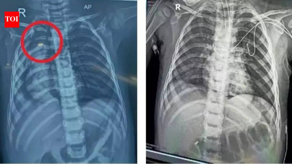 NOIDA: An 18-month-old child from Meerut accidentally ingested a peanut that got lodged in its airway. It absorbed moisture and swelled up, leading to respiratory failure and cardiac arrest. Timely intervention by doctors at a private facility in Noida eventually saved its life. The family initially thought the peanut was harmless and sought treatment in Meerut. For two days, the child kept on choking on the peanut. About a week ago, its condition deteriorated and the parents rushed the child to Fortis Noida around midnight. According to the team of doctors that treated it, the child was in severe respiratory distress with critically low oxygen levels. It soon suffered cardiac arrest linked to respiratory failure. The paediatric intensive care team immediately initiated advanced life support, including emergency intubation and mechanical ventilation, before proceeding with a bronchoscopy. The high-risk procedure lasted nearly five to six hours.Additional director of pulmonology at the hospital Dr Mayank Saxena said, “The peanut was stuck in the right main bronchus. The airway blockage was severe, and the child’s oxygen saturation dropped to nearly 20%. We used specialised tools such as cryo-biopsy forceps and a Dormia basket, a medical equipment that is used to remove spherical foreign bodies, to carefully remove multiple fragments of the swollen peanut from the airway. The child remained critical for the next 24 hours and was discharged two days later.” “We often see that foreign body ingestion, particularly organic materials like peanuts, can become extremely dangerous,” the doctor added. “These items absorb water, increase in size and may cause progressive and potentially fatal airway blockage. Prolonged hypoxia can cause the heart to go into asystole, a life-threatening condition where the heart stops beating and requires immediate CPR. It can also result in hypoxic-ischemic brain injury if not addressed promptly.“He added early evaluation with imaging, timely diagnosis and immediate removal are crucial, especially in young children. “The boy’s recovery brought relief to his family. But this case should serve as a reminder for parents to supervise children during meals and avoid giving small, hard foods,” he said.
