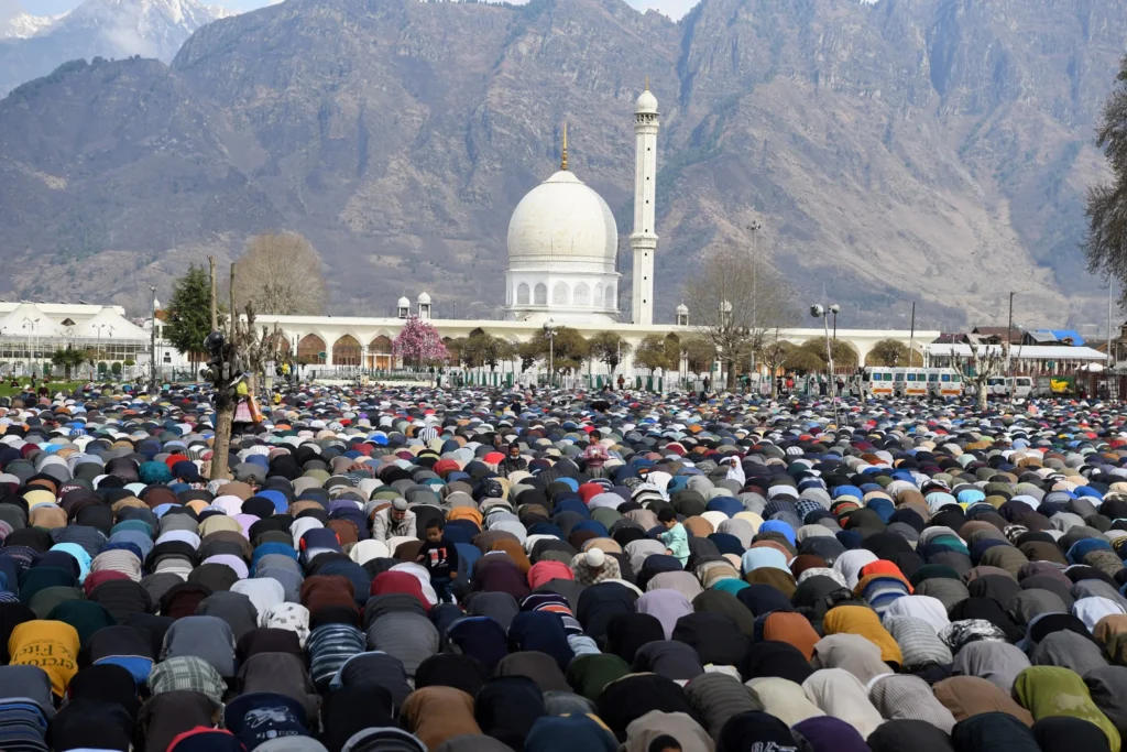 Walking with the support of a wooden stick and moving slowly through the sea of people, 80-year-old Ghulam Nabi finally found a place in the front rows of devotees gathered at the revered Hazratbal Shrine on Friday.