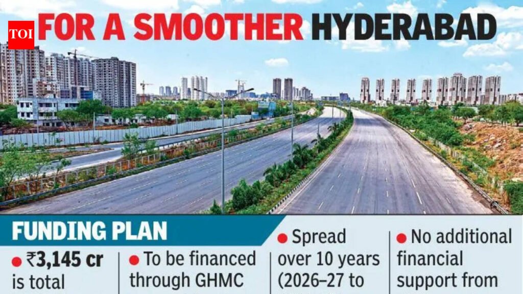 Hyderabad: A 1,045-km road network across Hyderabad is headed for an upgrade under Phase-2 of the Comprehensive Road Maintenance Programme (CRMP), at an estimated outlay of Rs 3,145 crore.The road network covers all three municipal corporations of Greater Hyderabad, Cyberabad and Malkajgiri. The state govt recently granted administrative sanction for the project. Of this, about Rs 2,230 crore will be spent on BT and CC roads under Phase I using conventional methods for a length of 744.22 km, while an additional Rs 208 crore has been earmarked for 64.49 km of CC roads not included in the first phase. Another Rs 707 crore will be utilised for 236 km of BT roads using Full-Depth Reclamation (FDR) technology.GHMC commissioner RV Karnan said that the entire project cost of Rs 3,145 crore would be funded through GHMC’s general funds over a 10-year period (2026-27 to 2035-36), without seeking additional financial support from the state govt.According to a GO issued by the municipal administration and urban Development (MAUD) department, the proposals under CRMP Phase II have been designed for a 10-year period, taking into account earlier works executed by HRDCL and the selective adoption of FDR technology based on pavement conditions.The plan also includes 398.32 km of approach roads, of which 97.5 km was already recarpeted using GHMC funds and is currently under execution. The remaining 300.79 km comprises 236.30 km of BT roads and 64.49 km of CC roads.Officials said that detailed project reports (DPRs) would be prepared before tendering. The recarpeting would be taken up only where necessary, while roads in good condition will undergo routine maintenance. Works will also include lane marking, mechanical sweeping, development of footpaths and medians, installation of signage and repairs to catch pits and manholes.