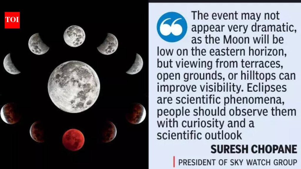 Nagpur: Residents of Nagpur and Chandrapur will witness a partial lunar eclipse at moonrise on March 3. It is the only eclipse that will be visible from India in 2026. About 25% of the moon will appear covered in both cities, giving skywatchers in Vidarbha a brief but notable view of the celestial event.According to Suresh Chopane, president of Sky Watch Group, the partial phase of the eclipse will begin at 3.20pm, followed by the total phase at 4.34pm, which will end at 5.32 pm. However, since the Moon will still be below the horizon for most of India during the total phase, a total eclipse will be visible only from Arunachal Pradesh.