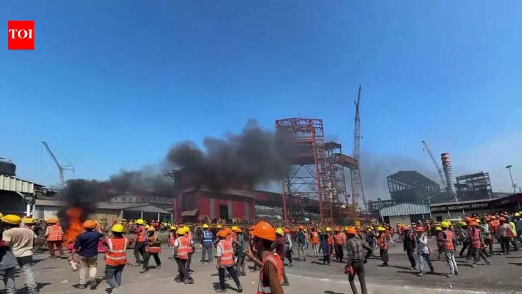 Surat: More than 2,000 workers of Larsen & Toubro (L&T) protested at the ArcelorMittal Nippon Steel India (AM/NS India) plant in Hazira near Surat on Thursday. The workers are demanding higher wages and better working conditions. As workers allegedly resorted to violence, police were called and ended up firing 70 tear gas shells over 30 minutes before the mob dispersed. Three police officials including a DCB police inspector and a constable were injured and an FIR for attempted murder is being registered against 46 detained workers and the mob. According to police, the workers were allegedly inspired by videos of the protest at the IOCL refinery in Panipat, which have been circulating in cyberspace for the last few days. Workers at Panipat have been demanding higher wages, better conditions and other facilities. On Thursday morning, the messages began circulating in WhatsApp groups of labour contractors and sub-contractors working under L&T at the AM/NS campus in Hazira. Around 10.30am, large numbers had gathered and started protesting. Hazira police inspector V L Parmar and others reached the spot and tried to reason with the workers. AM/NS and L&T officials also told the workers that their demands would be considered. However, the mob allegedly began pelting police with stones, taking a cue from a couple of ‘leaders’. DCP Zone 7 Shaifali Barwal, ACP Sweta Daniels, police force from Ichhapore, Pal, Adajan, Dumas, Umra and other police stations soon arrived and tried to disperse mob. The workers allegedly began started damaging vehicles and property on the campus. They allegedly set at least one car on fire and damaged several other vehicles. Barwal told TOI: “We have detained 46 workers against whom an FIR is being filed under for attempted murder, rioting and damaging property. The protest was inspired by the Panipat workers’ protest which has been going on for the last two days. We are in the process of finding the people who instigated others. We are also investigating what the motive for this violence was.” In a statement, AM/NS India confirmed that the workers concerned were on an L&T contract and had been deployed at various places on the campus in Hazira. L&T issued a statement telling the workers that they will implement provisions of Gujarat’s new labour code once it is notified. BOX: PI suffers burns from tear-gas grenade DCP Shaifali Barwal, inspector V L Parmar and a PCR driver were injured in the violence. While Barwal was hit by a stone, Parmar suffered burns from a tear-gas grenade. Parmar was about to lob a tear-gas grenade when the stone pelting forced him to move into a vehicle. The grenade fell as his hand hit the car door and went off, causing him burns. He had to be hospitalized. The PCR van driver was injured by window glass after a stone hit a window.