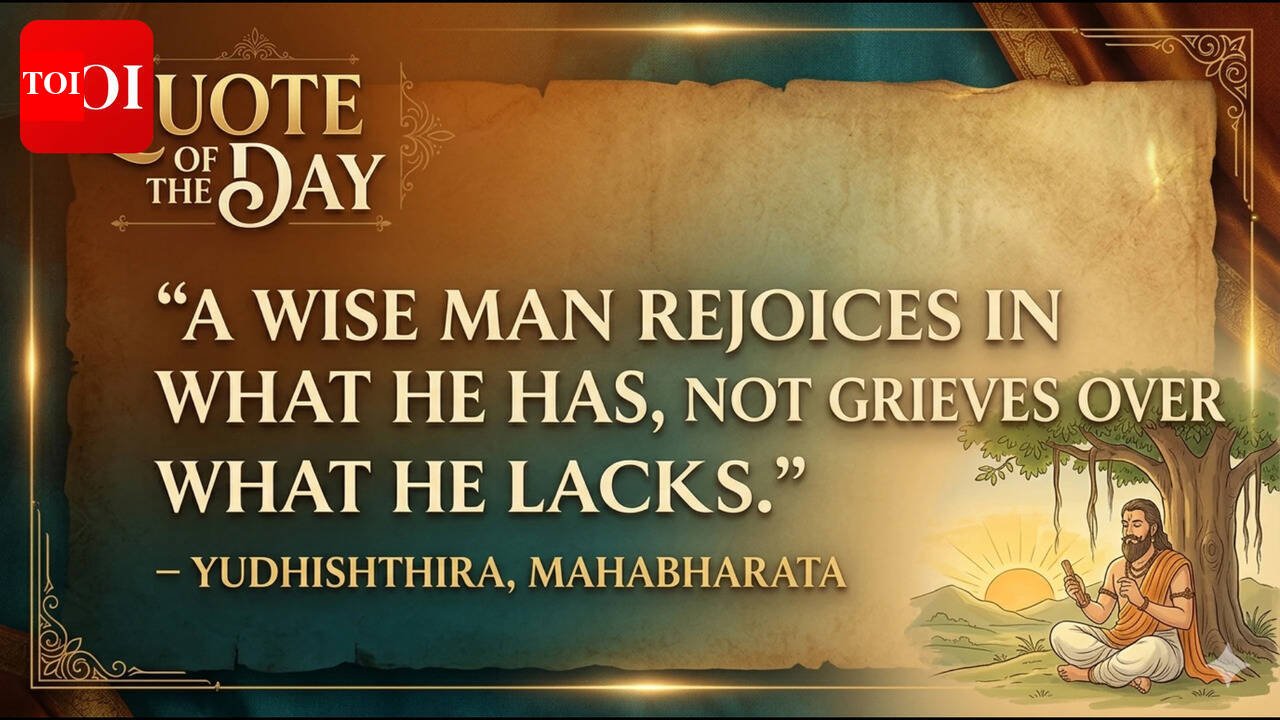 Even after centuries, the Mahabharata remains one of the profound texts that inspires people to live a good life. Called the ‘Great Indian Epic,’ the epic remains a study of ethics that every human should study. Through Yudhishthira’s trials, the epic teaches that true victory is not about winning a war but about keeping one’s calm in the face of both victory and defeat.Today’s quote of the day is also from the Mahabharata, reflecting on finding happiness in what you have. ‘A wise man rejoices in what he has, not grieves over what he lacks.’ These lines are found in the Vana Parva of the Mahabharata. In the story, this line comes during the Yaksha Prashna, one of the most thought-provoking parts of the epic. While in exile, Yudhishthira finds himself in a tough spot when he is asked to answer 124 philosophical riddles posed by a mysterious Yaksha to save his brothers’ lives. When asked about the secret to true happiness and what makes a “wise man,” Yudhishthira highlights contentment. He explains that grief comes from an undisciplined mind focusing on what is missing, while wisdom involves recognising the abundance that is already present. The quote goes beyond just a call to “be happy”; it is a way to achieve mental freedom. To “grieve over what one lacks” is to live in a state of constant poverty, no matter the financial situation. It traps the mind in a place where future desires diminish the value of the present reality. The quote emphasises that “rejoicing” is a conscious choice. A wise man sees his current resources—whether it be health, relationships, or a simple meal—and uses them as a base for peace.