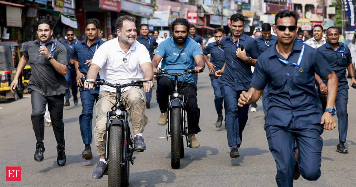 After the event in Puthuppally, Gandhi joined sitting MLA Chandy Oommen and the Congress candidate for a bicycle ride.