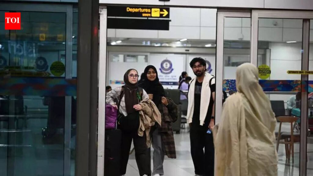 New Delhi: A loud blast minutes before boarding triggered panic at Dubai International Airport on Monday, forcing authorities to halt a Delhi-bound flight carrying Indian students and pilgrims evacuated from war-torn Iran. The flight finally landed in Delhi after a delay of more than 12 hours.Earlier, at Dubai airport, passengers waiting near the gate were rushed back inside the terminal as fears of another attack spread.“They told us nothing had happened. But when we checked online, we saw reports of a drone attack nearby,” said Labeeb Qadiri, a final-year MBBS student at Urmia University in Iran who was among those stranded at the airport.Authorities suspended operations at Dubai International Airport after a drone strike hit a fuel storage tank near the airport, sparking a fire that was later contained by civil defence teams. The incident forced airlines to delay or divert several flights as a precaution.Nearly 80 Indian students and pilgrims — most of them from Kashmir — remained stuck at Dubai airport for several hours after the incident disrupted flight operations. The students had travelled from Armenia to Dubai as part of the second batch of Indians leaving Iran amid the ongoing conflict.The Flydubai flight FZ441 was originally scheduled to land at Delhi’s Indira Gandhi International Airport at 9.55am Monday. After hours of uncertainty, it finally departed late afternoon and landed in Delhi just after 10pm.Students said airport authorities were first clearing flights that had been delayed earlier, to places like Riyadh and Kabul. “They told us ours may go later, so there was no clarity for hours,” Qadri said.For many students, the delay came after an already long and exhausting escape from Iran. Several travelled 9-19 hours by bus to reach the Armenia border, after waiting days for visas. With transport scarce, students said they had to arrange buses and hotel stays themselves before flying out.Not everyone could afford the sudden journey. Those who could, pooled money to help others make the trip. “Some didn’t have the money at that moment. So, everyone contributed. We couldn’t leave our friends behind to die,” Qadiri said.The prolonged delay in Dubai also disrupted onward travel plans for many. Several students were scheduled to take connecting flights from Delhi to Srinagar, which were missed due to the late arrival.Landing late at night also meant additional expenses for many students. “We may have to look for a hotel tonight or wait at the airport till morning for another flight. After everything we’ve been through, it’s just another uncertainty,” one student said.The Jammu and Kashmir Students Association urged authorities to arrange transport — preferably buses — from Delhi to Kashmir, saying the students had already endured a long and stressful journey from a conflict zone.By the time the flight landed in Delhi late Monday night, many students were visibly exhausted but relieved to have reached India safely. Outside the arrivals gate, the scene was one of emotional reunions. As an MBBS student stepped out, her mother broke down in tears and hugged her tightly, welcoming her with flowers.“We reached Dubai on Sunday morning and were stuck there till Monday. We even heard explosions three times. It was very hard for us… we paid for everything ourselves,” the student said, requesting anonymity.Among those waiting anxiously was Reema, mother of Adhfer Khan, a fourth-year MBBS student, who said the repeated disruptions caused by regional conflicts were taking a toll. “Bar bar wars ki wajah se bachchon ko wapas aana padta hai. Bahut mental stress hota hai. Ab jab tak cheezein theek nahi hoti, main use wapas nahi bhejungi (These children keep needing to return due to the wars. It causes a lot of mental stress. I will not send my child back till things settle),” she said.For the students, however, the immediate concern remained simple. “Bas, ghar pahunchna hai,” one of them said quietly after landing.