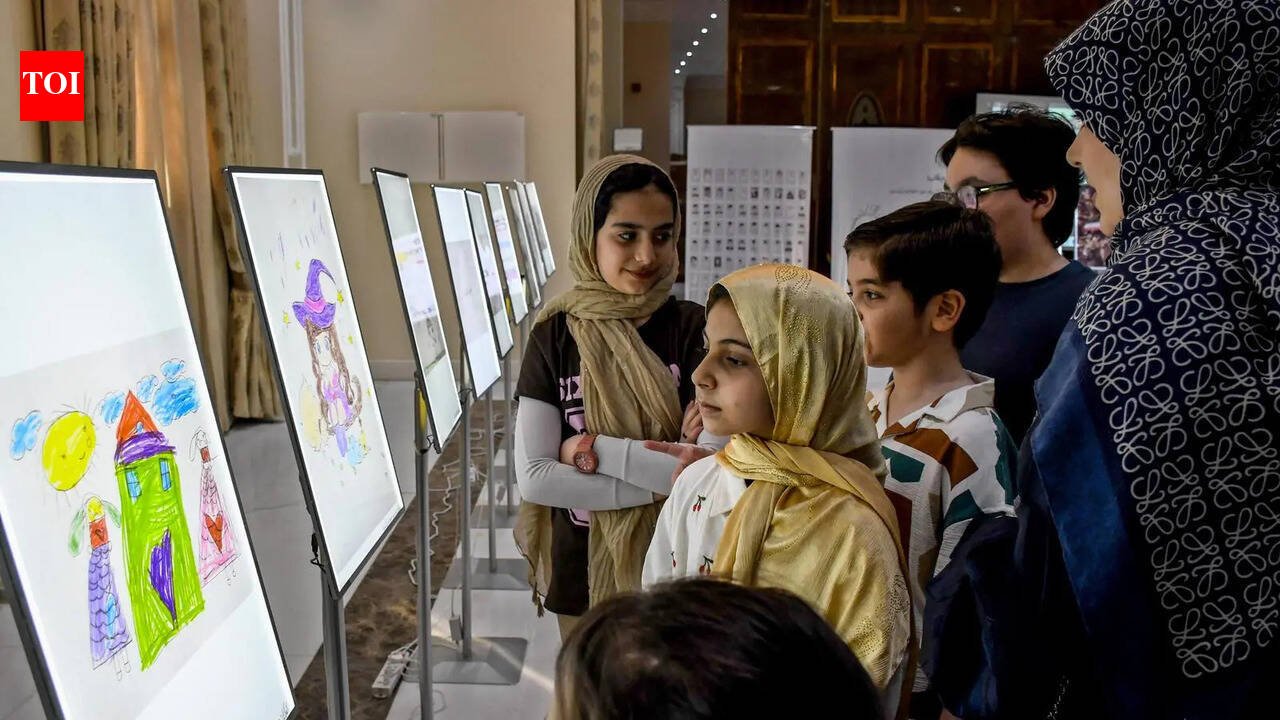 New Delhi: Roghayeg Salari, probably around five, had written her name in Persian across the top of a page that day — each letter in a different colour. Below it, faint traces of something she had erased still showed through. Her photograph, displayed beside this page at the Iranian embassy in Delhi, shows a young girl in a white hijab.This may have been among the last things Roghayeg did before a missile struck her school in southern Iran’s Minab on Feb 28 and took her life and that of 155 others, mostly children.On another page, two uneven hearts lean into each other. Inside one, a child has written in Persian, “I love my mother. When I go to school, I miss her.” The other reads, “I love my father and he drops me to school.”Twenty-eight such sheets, recovered from the debris of the Shajareh Tayyebeh girls’ elementary school, show simple, familiar images — a house under an open sky, birds, a school bus, a rainbow, a candle. Next to them are photographs of the children who drew them.Scanned copies of these drawings, recovered by Red Crescent rescue teams, have been brought to India and put on display by the embassy to draw the world’s attention to the innocent lives lost in the war.Titled ‘Minab Children Still Draw the Sun’, the exhibition opens with a poster filled with the kind of figures kids draw — a bright sun, an aeroplane, a car and a smiling figure. Inside, the walls hold scanned and restored versions of drawings — some torn, some smudged, all preserved just enough to be seen — pulled out of school bags that were buried in the debris.There is a brown fish with blue wings, marked with a star by a teacher. A fairy sits on a wand. Small, uneven sketches, the kind found in any classroom, now carry a different weight. Alongside them are rows of small, colourless photographs — resembling passport-sized images submitted for school forms — of the children who perished.One of the exhibition panels reads: “These are drawings that have been brought out from beneath the rubble of a school in Minab… Pages that were recovered through the efforts of the Red Crescent rescue teams, and have been restored only to the extent that they can be seen.” It adds, “The world depicted in them is still simple, bright and trustworthy — but the world outside did not remain so.”In the background, a song plays on a loop, accompanied by visuals of the destroyed school building. It tells the story of a father searching through the rubble for his daughter, only to find her lifeless body — a narrative that mirrors the intense grief shrouding the hall at the embassy.At the far end, photographs show rows of graves and coffins wrapped in the Iranian national flag, carried on the shoulders of grieving families.Officials at the embassy said the exhibition will remain open to the public from April 15 to 21, between 11 am and 4 pm. On Wednesday, children of Iranian diplomats walked quietly through the hall with their drawing teacher, stopping at each frame — looking at what children, perhaps their own age, had left behind.The aim is to draw global attention to the children killed in the conflict, embassy officials said, adding that similar exhibitions may be organised in other countries.Recently, in a symbolic gesture, images of the children killed in the Minab strike were placed on the seats of an Iranian govt flight to Islamabad. Iranian Parliament speaker Mohammad Bagher Qalibaf shared the images — placed on backpacks with roses — calling them his “companions on the flight.”The Minab strike, described by Iranian authorities as a targeted attack on a school, remains contested internationally. But inside the exhibition hall thousands of kilometres away, this debate feels distant. What tugs at our heartstrings are the drawings — and the memories of the children were behind them.