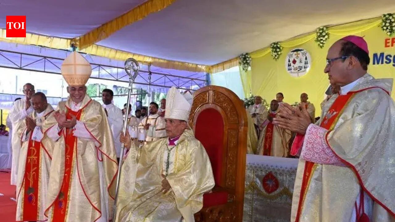 Udupi: The episcopal ordination and consecration celebration of Rev Leslie Clifford D’Souza as second Bishop of Udupi Diocese took place at Milagres College Grounds on Monday.The episcopal ordination was conferred by Rev Filipe Neri Cardinal Ferrão, Archbishop of Goa and Daman, who served as the principal consecrator. He was joined by Archbishop of Bangalore Rev Peter Machado and the apostolic administrator of Udupi Diocese, Fr Gerald Isaac Lobo, as co-consecrators, in the presence of Apostolic Nuncio to India and Nepal, Archbishop Rev Leopoldo Girelli, along with over 30 bishops, 300 priests, an equal number of nuns and around 6,000 faithful.Appointed by Pope Leo XIV on Jan 31, Rev D’Souza becomes the second shepherd of the Diocese of Udupi, marking a significant milestone in the diocese’s pastoral journey since its establishment in 2012.The rite of ordination included the proclamation of the Papal Bull formally appointing the bishop, followed by the solemn liturgical rites of episcopal consecration. Fr Steevan Dsouza, chancellor, Diocese of Udupi, read out the official letter from the father from the Holy Catholic Church. Rev Peter Paul Saldhanha, Bishop, Diocese of Mangalore, delivered blessings. A solemn public felicitation programme was held to honour the newly ordained Bishop. A moment of honour followed with the felicitation of the Apostolic Nuncio and Archbishop of Goa and Daman. Later, the Diocese of Udupi felicitated Bishop Leslie Clifford D’Souza.In his address, the bishop expressed gratitude to God, his family, his mentors and the faithful. He humbly acknowledged the challenges ahead but affirmed his trust in divine providence. “Together, let us build a Church rooted in love, service and truth,” he said.Rev Peter Machado spoke highly of the retiring Bishop Emeritus, Rev Gerald Isaac Lobo, appreciating his exemplary service and immense contribution both in the Diocese of Shimoga and in nurturing the Infant Diocese of Udupi for over 13.5 years. He described Bishop Gerald Lobo as a visionary shepherd whose dedication laid a strong foundation for the growth of the Diocese. Rev Lobo urged all to extend wholehearted cooperation to the new bishop.