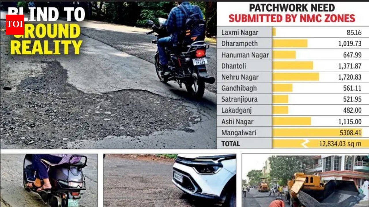 Nagpur: It appears Nagpur’s pothole problem has mysteriously vanished — at least on paper. If the figures submitted by the 10 zonal offices of Nagpur Municipal Corporation (NMC) are to be believed, barely 12,834.03 square metres of asphalt roads across the entire city are in need of patchwork.The claim comes despite months of complaints from motorists, residents and commuters about damaged internal roads and crater-like potholes on several stretches of the city. Yet, after repeated instructions from the headquarters, zonal engineers have reported what officials themselves describe as a surprisingly “minimal” requirement for repairs, raising serious doubts about the accuracy of the ground assessment.Now, the executive engineer of the NMC’s hot-mix plant department has issued a second reminder asking all zonal executive engineers and assistant commissioners to submit revised road repair estimates within three days. The letter states that the plant can finish patchwork on the area currently submitted in just 24 days — an indication of the miniscule volume of repair requirements. The figures submitted by the zones show glaring inconsistencies. Nehru Nagar zone has reported more than 1,700 sq m of patchwork, Dhantoli zone around 1,371 sq m and Dharampeth zone just over 1,000 sq m. Several other zones, however, have reported surprisingly low figures despite visible road damage and frequent complaints from citizens.The communication also warns that once the proposal is finalised — including a 10% contingency — no additional load for annual road maintenance will be considered. This has triggered concerns that zonal officials may be currently underreporting patchwork requirements only to push emergency repairs during the monsoon, a pattern that was seen in previous years as well.The issue again highlights the chronic underutilisation of the NMC’s upgraded in-house hot-mix plant. The facility was strengthened specifically to speed up pothole repairs and reduce dependence on private contractors, but the latest figures suggest the zones are still reluctant to rely on it.In Nagpur city, roads are owned by multiple agencies. The NMC owns over 4,000km of roads, while the rest come under other agencies like Nagpur Improvement Trust, state PWD, NHAI, and Maha Metro. However, barring NMC, none of the agencies take care of roads falling under their purview. According to experts, only one agency should be made in charge of maintaining all city roads falling under municipal corporation limits.
