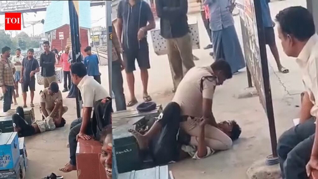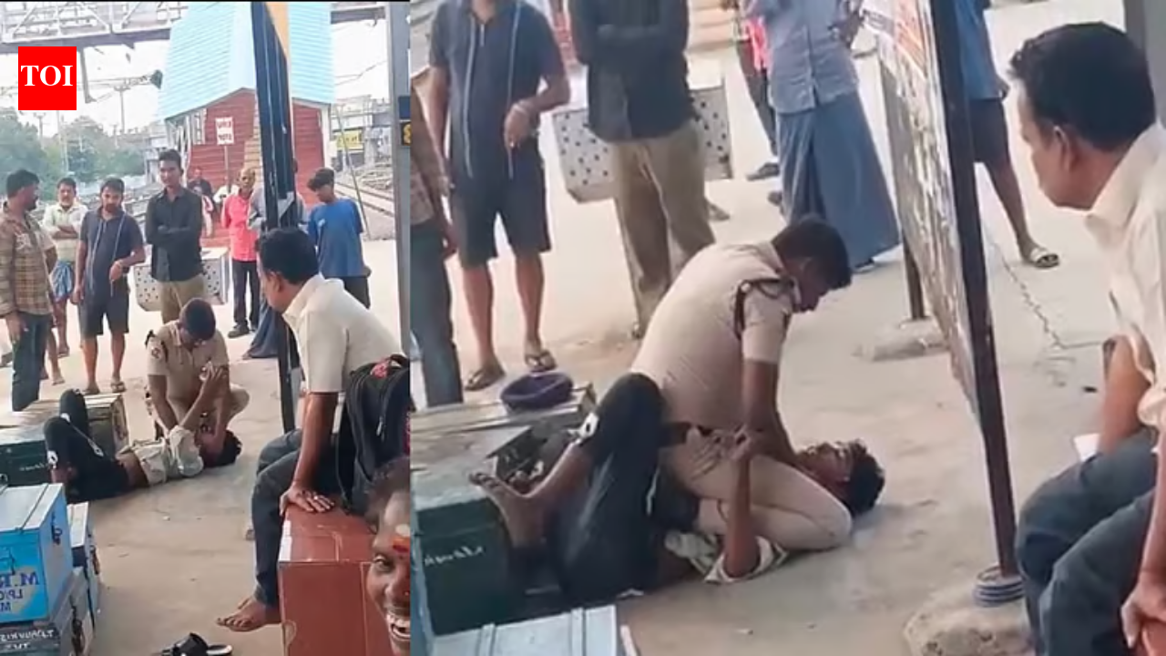 CHENNAI: A video of a Railway Protection Force constable pinning down a youth and kneeling on his neck at Tiruvottiyur railway station drew widespread condemnation on social media.The incident occurred on Feb 11, when a youth, who was drunk, was travelling without a ticket in a first-class compartment, police said. He boarded a train from Chennai Central to Gummidipoondi. When police questioned him, he became unruly. When the train arrived at Tiruvottiyur, a train ticket examiner (TTE) caught him and handed him over to RPF personnel.RPF personnel then pushed him onto the platform. A video that went viral showed a constable kneeling on the man’s neck for some time before sitting on his chest and slapping his face repeatedly. Following this, RPF officials questioned the policeman, whose identity was withheld, for manhandling the youth. An internal inquiry was ordered to probe the matter. RPF sources said departmental action will be initiated against the policeman based on the inquiry report.