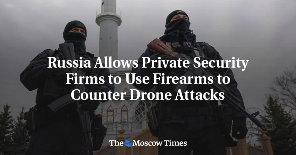 President Vladimir Putin has signed a law allowing private security companies to temporarily use firearms to protect critical infrastructure from drone attacks during the war in Ukraine, the state-run TASS news agency reported Monday, citing official documents.
