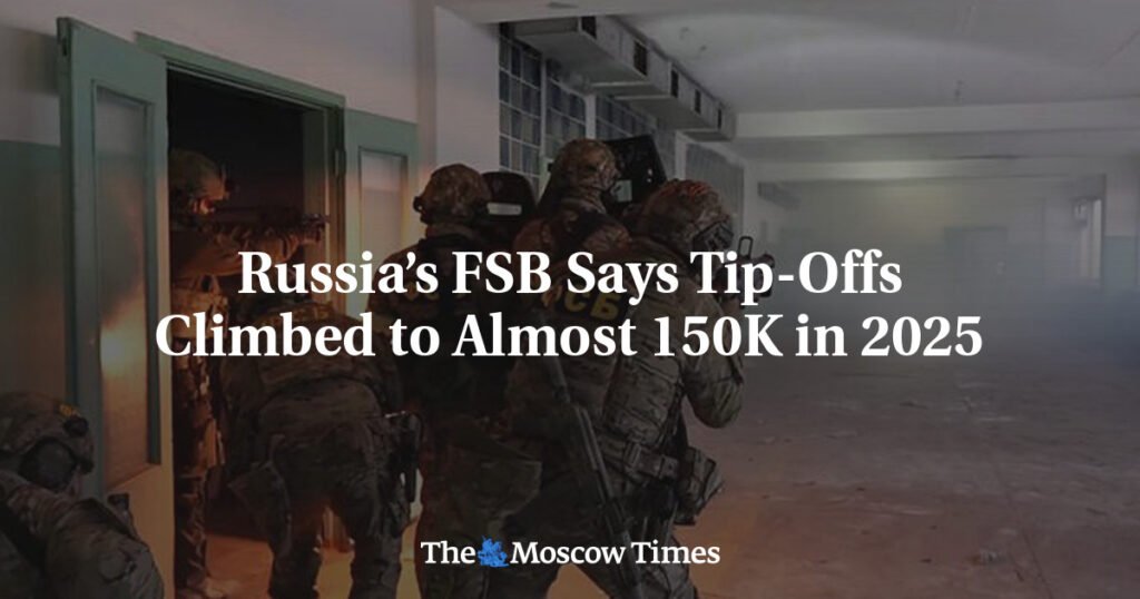 Calls to the Federal Security Service (FSB)’s public tip-off hotline surged in 2025, the agency said Tuesday amid what Russian officials say is an ongoing campaign of sabotage during the nearly four-year war on Ukraine.