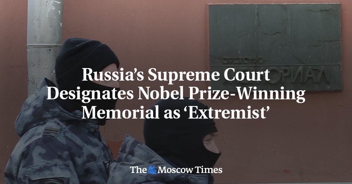 Russia’s Supreme Court on Thursday declared the Nobel Prize-winning human rights organization Memorial an “extremist” group, a designation that effectively criminalizes its remaining operations and exposes its supporters to criminal prosecution.