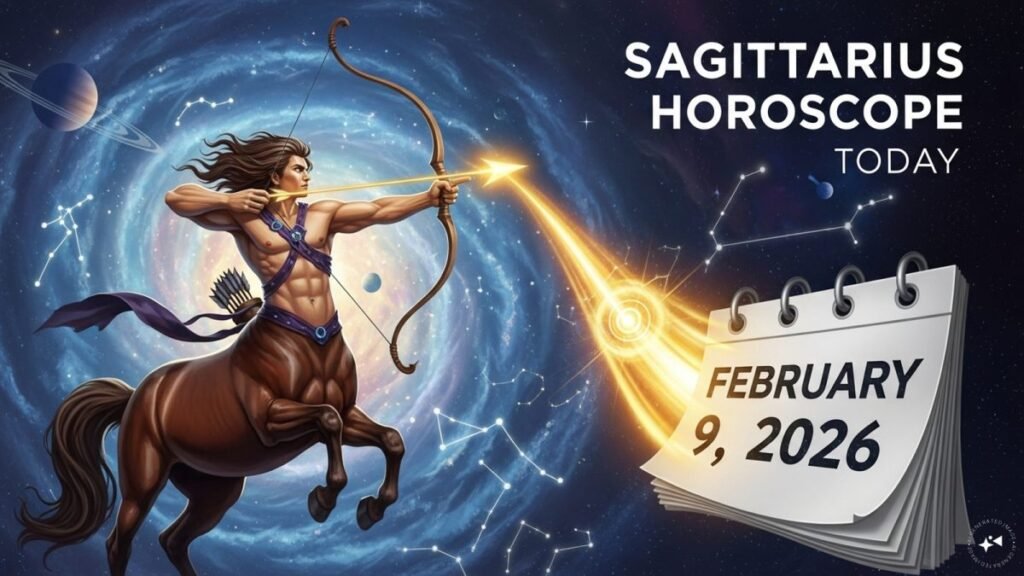Sagittarius Daily Horoscope, February 9, 2026: Sagittarius may invest in government works, face penalties, get promoted, gain financially, expand business, enjoy family harmony.