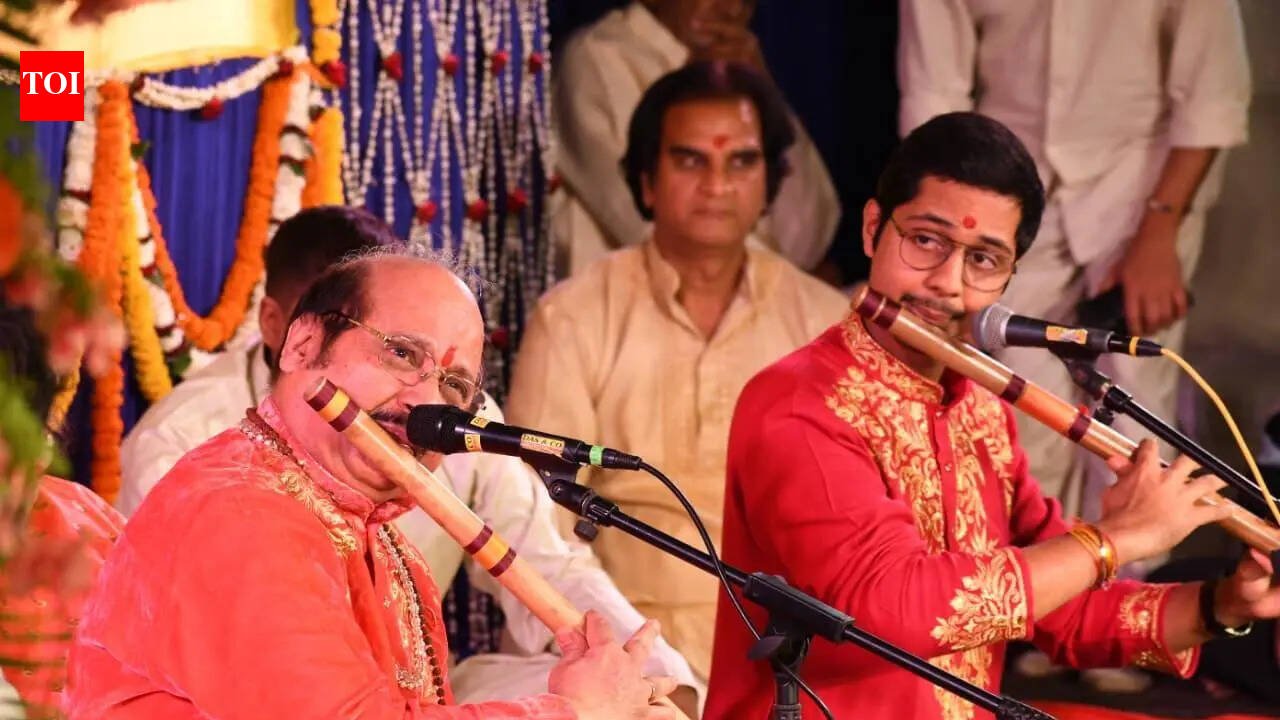 Varanasi: The Sankat Mochan Sangeet Samaroh’s fifth night was a mesmerising blend of dance and music at the revered Sankat Mochan Temple. Pt Ram Mohon Maharaj’s kathak performance stole the show, backed by talented musicians — Pt Sanju Sahay on tabla, Arif Khan on vocals, Vinayak Sahay on Sarangi, Siddhant Chakravarti on Sitar, and Vishal Krishna on Bol Padhant.In the second presentation, Pt Tejendra Narayan Majumdar’s sublime Sarod rendition entranced the audience, weaving a spell with alap, jod, and jhala in Raag Nand, followed by intricate compositions in teentaal and jhaptal. The maestro concluded with a breathtaking Gatkari in tritaal, Raag Tilak Kamod. Pt Kumar Bose’s masterful tabla accompaniment created a mesmerising jugalbandi, etching the evening in memory.In the next presentation, Pt. Ronu Majumdar from Mumbai, along with his son-disciple Rishikesh Majumdar, enthralled the audience with soulful flute music. They performed alapchari in Raag Darbari, followed by Gatkari in teentaal in Raag Abhogi. They ended the performance with a bhajan. They were accompanied by Rohen Bose on tabla.Senior vocalist Kankana Banerjee took the stage, enchanting all with Raag Bageshri compositions in jhumra and teentaal. She concluded with a soulful piece in Raag Bihag (teen taal) and a Bhajan. Pt Samar Saha’s tabla and Mohit Sahni’s Sanvadini added depth to her mesmerising performance.As the evening progressed, Ustad Maskoor Ali Khan of the Kirana Gharana from Kolkata impressed the audience with his powerful singing. He began with Raag Kaushik Dhwani. He presented two compositions in ektaal and teentaal, followed by a Tarana set in teentaal in Bahar. Bilal Khan Sonavi assisted him on tabla and Mohit Sahni on Sanvadini.Amarendra Mishra’s Sitar recital was a treat, with Alapchari in Raag Kaushik Kanhada, followed by teentaal and ektaal compositions. He ended with a captivating tune. Next, Aniruddha Bhattacharya’s soulful vocals in Raag Lalit mesmerised all, with Subrat Dandpav’s tabla support.In the final presentation, Pt. Abhishek Vyas from Ujjain rendered Raag Ahir Bhairav on the Makrand Veena. He concluded his performance with Gatkari in teentaal. Anshul Pratap Singh accompanied him on tabla.