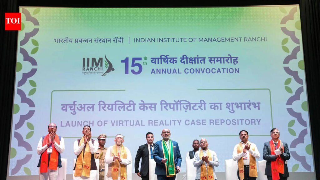 Ranchi: Vice President C P Radhakrishnan on Saturday said management education must go beyond boardrooms and balance sheets and engage with society, address real-world challenges and contribute to inclusive growth.Speaking at the 15th convocation of the Indian Institute of Management-Ranchi (IIM-R) he said, “Hard work, sincerity and devotion may not bring results in the expected way tomorrow, but I am sure that when it comes it would be more than expectation.”As many as 558 students received their degrees in this year’s convocation. This includes 26 PhD degrees, 11 PhD (Executive) degrees, and graduates from various programmes from batch 2024-26 – MBA (251), MBA HRM (62), MBA BA (50), MBA (Executive) (50), IPM (BBA+MBA) batch 2021-26 (73 students), and IPM (BBA) batch 2022-25 (35 students).The VP urged the students to stay away from drugs and also not allow their friends and relatives consume them adding it could destroy a person’s life.Radhakrishnan said Jharkhand brought good luck for him and President Droupadi Murmu as both of them were elevated to the top constitutional posts of the country after serving as governors of the state. He said, “Students should always remember that the true measure of success lies not in what one accumulates, but in what one gives back to society.”Notably, Radhakrishnan served as Jharkhand’s governor from February 2023 to July 2024 before being appointed as Maharashtra governor.The VP also urged the state urban development minister Sudivya Kumar to build an elevated approach road to IIM-R while stating that present road was in improper shape.Jharkhand governor Santosh Kumar Gangwar, deputy chairman Rajya Sabha Harivansh, Union minister of state for defence Sanjay Seth were present on the occasion.Radhakrishnan visited Ulihatu in Khunti district, the birthplace of tribal icon Birsa Munda, and paid tributes to the freedom fighter. Radhakrishnan fondly recalled his visit to Ulihatu on the very first day being sworn in as governor, and interacted with Birsa’s descendents.
