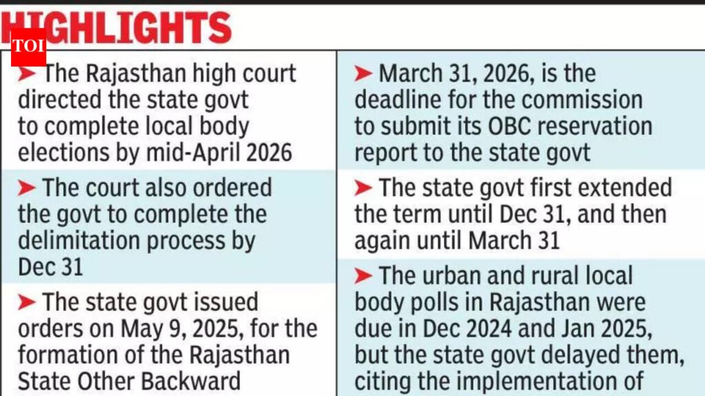 Jaipur: The State Election Commission (SEC) has written a letter to the panchayati raj department warning it that if the elections were not held within the stipulated time and the Supreme Court or High Court take contempt action, the panchayati raj department officials would be held responsible.The commission asked the state govt to comply with the court’s order and inform it about the reservation status of all seats. In a letter dated March 9, the SEC referred to a Supreme Court ruling in a Madhya Pradesh case, which allowed local body elections to be conducted even without an OBC Commission report. The commission directed the panchayati raj department to finalise reservations soon, noting that OBC seats could be treated as ‘general’ if a decision is not taken, suggesting a legal way to conduct panchayati raj elections.Earlier, Rajasthan’s local body elections may be delayed again after the state OBC Commission has told state chief secretary V Srinivas that population data needed to finalise OBC seat reservations is incomplete and inaccurate.In a letter to Srinivas, the OBC Commission said the Jan Aadhaar Authority’s backward-class population data had “serious discrepancies,” leaving it unable to determine OBC reservation in panchayat wards. It urged the state to direct all district collectors to send accurate, complete information to enable the reservation exercise.The commission also flagged discrepancies in data linked to Rajasthan State Commission for Backward Classes records on panchayat-wise SC and ST reservations, saying clear and complete panchayat-level population figures and required SC/ST reservation information had not been provided.With the data still incomplete, it is uncertain whether the commission can submit its OBC reservation report to the state govt by March 31. The Rajasthan high court had earlier directed the state to conduct local body elections by mid-April.Anticipating the govt’s alleged but to further delay the overdue local body polls, former Cong MLA Sanyam Lodha filed a caveat in Supreme Court against the state’s petition seeking to postpone elections to 113 urban local bodies. Sources said the Commission highlighted anomalies across gram panchayats. It said that in 403 panchayats, both total population and OBC population were recorded as zero. In 118 panchayats, total population was shown as 1–500, and in 266 panchayats it was 501–1,000. The figures contradict the Panchayati Raj department guidelines that gram panchayats should have a population of over 1,200.The panel said the discrepancies show the population data is incomplete and inaccurate and asked the Jan Aadhaar Authority to rectify errors. It also said that despite informing the panchayati raj department, panchayat-wise population figures and SC/ST reservation details had not been received till Feb 24.