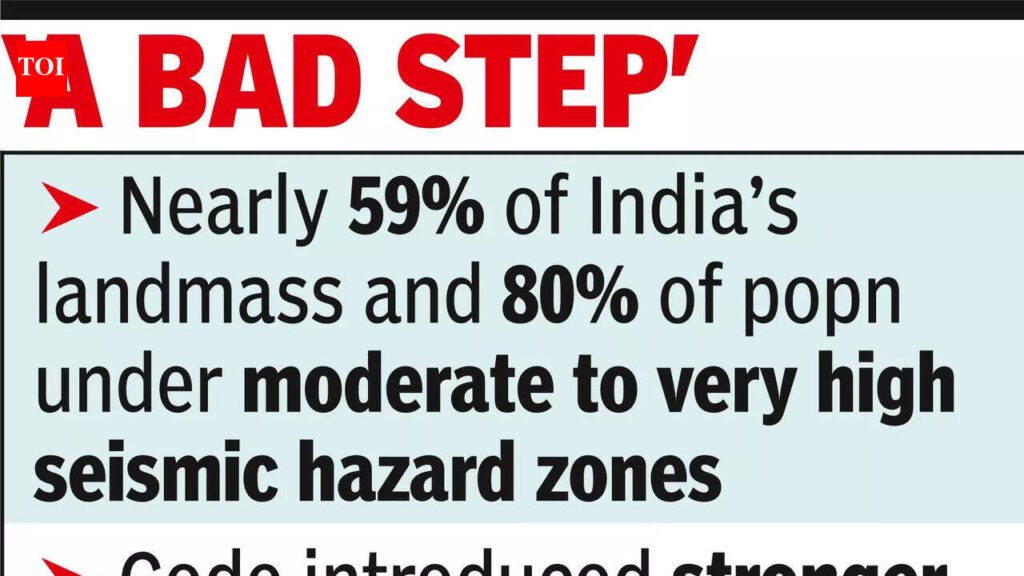 India’s seismic risk far from marginal, warn geologistsSeveral experts described the withdrawal as “a missed opportunity to strengthen India’s disaster resilience”, particularly in regions that scientists long warned could experience a devastating earthquake.Senior geoscientist CP Rajendran termed the rollback a “bad step”. “We don’t know what triggered the govt to roll back such a bold policy. The new seismic code was based on the knowledge the scientific community had accumulated about earthquakes and its possible impact on India,” he said.Rajendran added that scientists repeatedly warned that the Himalayan region could witness a magnitude eight or a larger quake in future. “New code was a reflection of the real earthquake risks the country faces,” Rajendran said.Geologists pointed out that India’s seismic risk was far from marginal. According to experts, nearly 59% of the country’s landmass and nearly 80% of the population fell under moderate to very high seismic hazard zones.Piyoosh Rautela, geologist and former executive director of Uttarakhand State Disaster Management Authority, said the proposed revisions to the code represented a major step forward in improving the country’s preparedness.“The proposed revisions marked a major step in strengthening India’s seismic design framework to better protect the country’s built environment from future earthquakes,” Rautela said. He added that the newly- proposed Zone VI covering the Himalayan arc acknowledged the persistent tectonic threat along the Indo-Eurasian plate boundary — similar to the earthquakes seen during the 2001 Bhuj and 2015 Nepal earthquakes.Experts further said the revised code introduced stronger safety measures, including improved design spectra, a 10-30% increase in base shear requirements, stricter rules for structural irregularities, and more rigorous geotechnical and dynamic analyses. These changes aimed to promote performance-based engineering — ensuring buildings were designed not only to survive shaking, but also to minimise collapse risks and economic losses during large quakes.At the same time, experts acknowledged that the revised code had major implications for construction practices and ongoing infrastructure projects across the country.