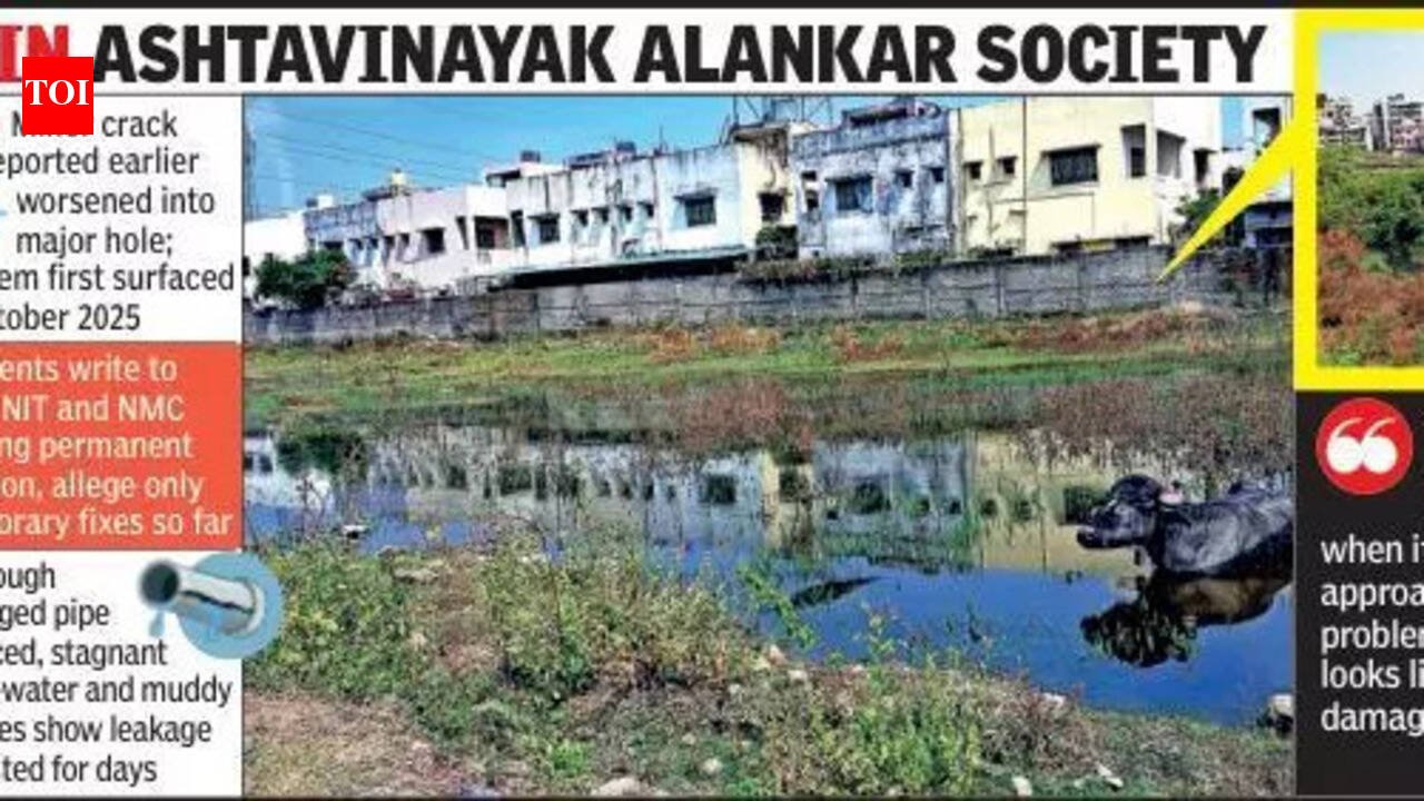 A similar issue had surfaced earlier and was resolved only after residents approached the local MLA. With the problem resurfacing, the society association has written again to the MLA, as well as to the Nagpur Improvement Trust (NIT) and the Nagpur Municipal Corporation (NMC), seeking immediate intervention and a permanent solution.When TOI visited the site, sewage water was seen spread across the open plot, leaving the soil damp and foul-smelling. Though the damaged pipe had been removed and a new line installed, traces of stagnant wastewater and muddy patches indicated that the leakage had persisted for several days. The surrounding area bore signs of recent digging, with loose soil and debris scattered around.Kisan Ganvir, a school van driver, told TOI that a minor leak had existed for a long time, but the situation worsened when the crack turned into a full-fledged hole, causing heavy outflow. “The problem began in early October (2025). We tolerated it initially, but when it became unbearable, we approached the NMC. That problem was solved then, but it looks like the pipeline has been damaged yet again,” he said.In a letter addressed to civic authorities, residents stated that drainage lines passing behind the colony frequently overflow, leaving the area dirty and unhygienic. Despite repeated complaints, they claim only temporary inspections and assurances have been offered, with no permanent corrective action, fund allocation, or work orders issued.“Being able to live in a hygienic environment is a basic right, and the civic body must address the issue immediately,” said another resident, who preferred to be anonymous.Despite multiple attempts, officials of the NMC’s Mangalwari zone could not be contacted.