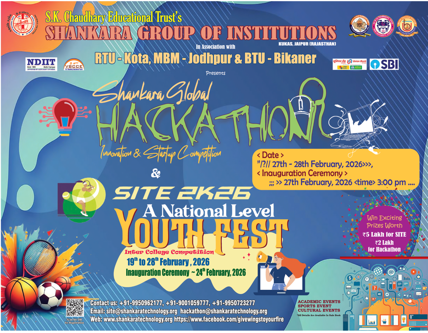 We are pleased to inform you that the Shankara Group of Institutions, Jaipur is organizing 24 hours Non-Stop “ Shankara Global HACKATHON – Innovation & Startup Competition” in association with RTU, Kota, MBM University, Jodhpur and BTU, Bikaner from 27th February 2026 to 28th February 2026.