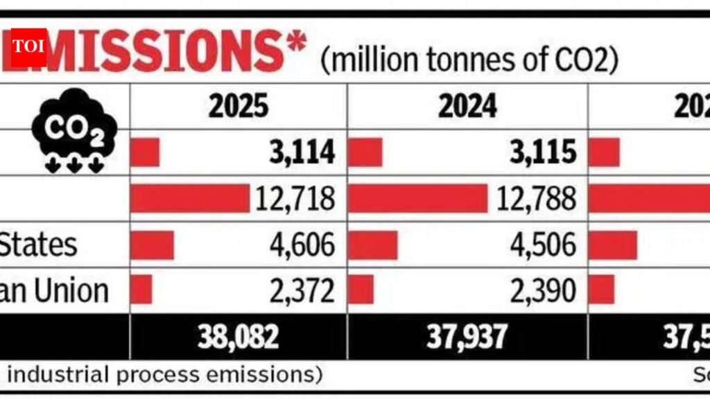 Chennai: India’s carbon emissions have, for once, paused. In 2025, the country’s carbon dioxide output edged down, breaking a decades-long trend of steady increases. This is also the first time on record that emissions have fallen during normal economic conditions. Previous declines were seen only during exceptional disruptions, such as the 2020 pandemic and the oil shocks of the 1970s.The drop was driven largely by cyclical factors linked to a strong monsoon last year, alongside a continued robust expansion of renewable capacity..In 2025, the monsoon arrived early and with unusual force—both strong and prolonged. Cooler temperatures and heavier rains reduced electricity demand, particularly by lowering the need for air conditioning and agricultural water pumping—two of the grid’s biggest loads. Power consumption lost momentum, growing by just 1.4% in 2025 after four years of expansion above 6%.Cooling demand was especially subdued, with cooling degree days were 10% lower than in 2024, according to estimates from the International Energy Agency.That softness in power demand fed straight into coal, still the backbone of India’s power mix. Coal-fired generation slipped by around 3%—only the third such decline in half a century. Weather alone is estimated to have reduced coal demand by roughly 8 million tonnes of coal equivalent, cutting more than 20 million tonnes of CO₂ emissions.At the same time, the supply side grew cleaner. Generous rains lifted hydropower output, while renewables continued their rapid ascent. India added nearly 50GW of solar capacity in 2025, pushing total renewable additions up by about 60%, the fastest pace among major economies. Wind installations, though smaller in scale, also doubled to more than 6GW. With demand subdued and cleaner generation rising, natural-gas use fell by 3.5%, including a near 10% drop in gas-fired power.Elsewhere, weather conditions had a notable impact on emissions. In America, a cold winter and higher gas prices encouraged a switch back to coal, nudging emissions up. Europe’s emissions continued to fall, though more slowly, as weaker wind and hydro output coincided with stronger heating demand. China, by contrast, managed a modest decline of around 0.5%, as rapid additions of renewables and nuclear power displaced coal in electricity generation.Globally, the pattern was unusual. For the first time in nearly three decades, emissions in advanced economies grew faster than in emerging ones: rising by 0.5% in the former, while slowing to 0.3% growth in the latter.