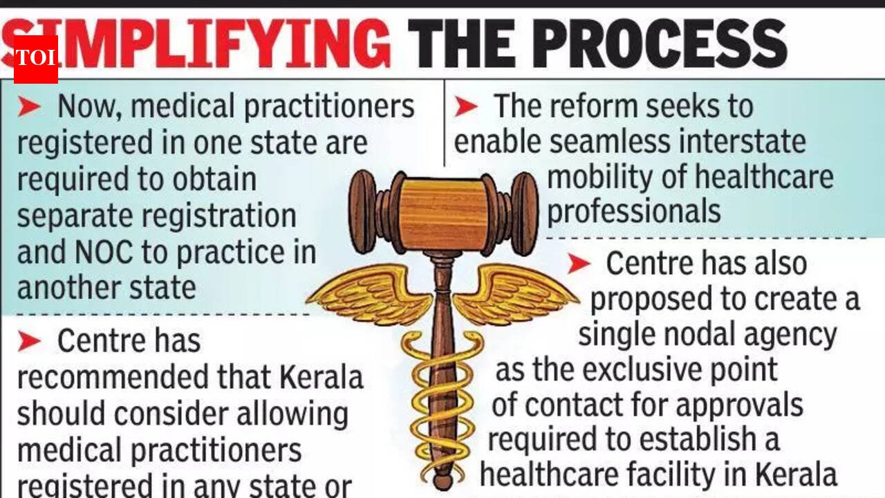 T’puram: The Centre’s deregulation cell under the cabinet secretariat has placed two health-sector reform proposals before the state govt as part of phase II of the ‘Compliance Reduction and Deregulation’ initiative, part of ease of doing business. The two proposals (accessed by TOI) relate to simplifying interstate practice for medical professionals and streamlining the licensing framework for healthcare establishments. At present, medical practitioners registered in one state are required to obtain separate registration and, in most cases, a no objection certificate (NOC) to practice in another state. In Kerala, the regulatory framework is governed by the Kerala State Medical Practitioners Act, 2021, which empowers the state medical councils for modern medicine, Indian Systems of Medicine (ISM) and homeopathy to grant registration. Nurses must obtain registration under the Kerala Nurses and Midwives Act, 1953, through the Kerala Nursing Council, while paramedical technicians require registration from the Kerala Paramedical Council. A doctor registered in another state must therefore secure registration and/or an NOC before being permitted to legally practice in Kerala. The Centre has recommended that the state should consider allowing medical practitioners doctors, nurses and technicians who are registered in any state medical council or listed in the National Medical Register (NMR) to practice without requiring fresh registration or prior approval here. The arrangement may be based on self-certification, and the state need not seek an NOC from the practitioner’s previous state. The reform seeks to leverage the National Medical Register framework under the National Medical Commission (NMC) to enable seamless interstate mobility of healthcare professionals. “The proposal to make registration in one state valid in another can help address the shortage of doctors, particularly in rural and border districts. In areas such as Idukki, Palakkad and Wayanad, it could attract more doctors who are registered in neighbouring states. Registrations elsewhere are also granted after due diligence, so there is no reason to doubt their credibility,” said Kerala Govt Medical Officers’ Association (KGMOA) general secretary Jobin Joseph. Implementing this proposal would require a policy decision by the state govt and possible amendments to the relevant Acts and Rules governing registration and licensing. Any move to dispense with the existing dual-registration requirement would involve legislative changes and procedural adjustments by the respective councils. The second proposal addresses the multiplicity of licences required to establish and operate a healthcare facility in Kerala. At present, healthcare establishments must obtain approvals under multiple laws and regulatory regimes, including the Kerala Clinical Establishments Act, the Drugs and Cosmetics Act, the Biomedical Waste Management Rules, the Pre-Conception and Pre-Natal Diagnostic Techniques (PCPNDT) Act, the Surrogacy (Regulation) Act, 2021 and Rules, 2022, the Assisted Reproductive Technology (ART) (Regulation) Act, 2021 and Rules, 2022, the Food Safety and Standards Act for hospital kitchens, fire and safety NOCs, pollution control board consent and local self government trade licences. Even a standalone radiology centre may have to secure numerous clearances from different wings within and outside the health department.Under this reform, the Centre has proposed creation of a single nodal agency within the health and family welfare department to function as the exclusive point of contact for healthcare-specific approvals. This nodal body would coordinate with all relevant departments to secure licences, registrations and NOCs on behalf of investors. The proposal also allows for onboarding a third-party private entity to manage coordination functions against a fee paid by the healthcare establishment.“As for creating a single nodal agency for establishing hospitals or clinics, it can certainly ease procedures and encourage the setting up of new clinics and smaller hospitals, especially at a time when the healthcare sector is witnessing a significant influx of corporate players,” he added.