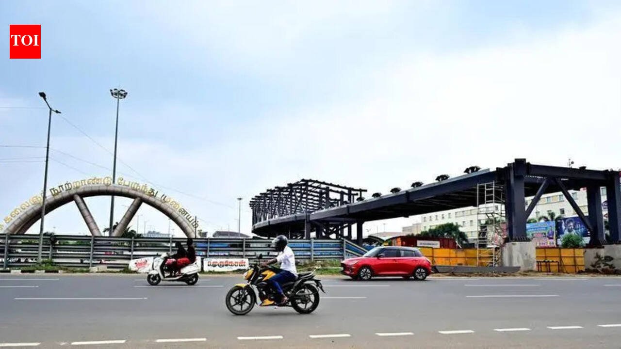 Chennai: The skywalk across Grand Southern Trunk Road connecting Kilambakkam bus terminus and the newly constructed suburban railway station is expected to be completed and opened to the public in May. The work has overshot multiple deadlines, forcing commuters to continue darting across GST Road through high-speed traffic to reach the MTC and mofussil terminus.Officials said they are waiting for approval from traffic police to launch the remaining span of the structure. “It will take a day to erect the second arm across the road, and vehicles will have to be diverted during this operation. We have been asked to wait till May 4,” an official said. The 275m-long skywalk was to be inaugurated before the Model Code of Conduct for the assembly elections came into force, but rectification of excessive deflection in the already erected arm, flagged by IIT Madras, led to further delay. “The structure of the other half has been assembled and kept ready. With due consent from departments concerned, the arm will be launched overnight and kept under observation for another 12 hours,” the official added.Kalaignar Centenary Bus Terminus was inaugurated in Dec 2023 and mofussil operations were shifted from Koyambedu, but poor multimodal integration has made access difficult for passengers bound for southern districts. Subsequently, state govt and Southern Railway decided to build a Kilambakkam halt station between Vandalur and Guduvanchery and provide a dedicated skywalk for seamless connectivity. Once the skywalk is opened, commuters will be able to walk from the bus terminus to the suburban station and cross GST Road without hindrance.The foot overbridge across the railway tracks and stairways to the platforms will be taken up only after the span over GST Road is completed. This means passengers have to wait longer to directly access the platforms. Railway officials said the station infrastructure is ready, but trains can be halted there only after the foot overbridge is completed.