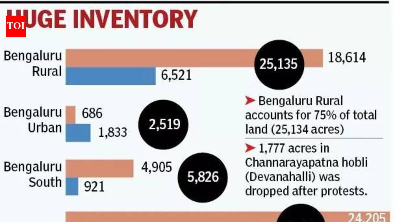 Bengaluru: Investors looking to set up industries in and around Bengaluru have long flagged an acute shortage of land, with several firms either rewriting plans or choosing neighbouring states that offer ready land parcels and quicker approvals. Now, the state govt says the situation is set to change with the creation of a large industrial land bank on the outskirts of the city. Between April 2023 and March 2024, the govt acquired over 24,205 acres of land across Bengaluru Urban, Bengaluru Rural and Bengaluru South districts to meet rising industrial demand.