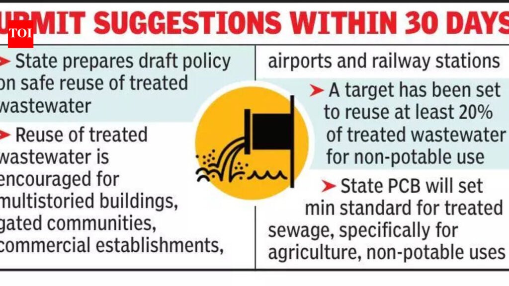 Kolkata: The state urban development and municipal affairs department has prepared a draft of the West Bengal state policy on safe reuse of treated wastewater, with the objective of promoting safe and sustainable reuse of treated wastewater.The draft mentions that residential housing units constructed after obtaining environmental clearance must ensure reuse of treated wastewater as much as possible for non-potable use, and that reuse of treated wastewater was encouraged for multistoried buildings, gated communities, public buildings, commercial establishments, hotels, airports and major railway stations. All stakeholders, experts, and institutions were requested to submit their suggestions on the draft policy within the next 30 days.