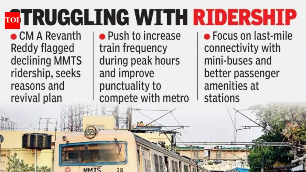 Hyderabad: With growing needs for an efficient public transport system in the core urban region economy (CURE), chief minister A Revanth Reddy has asked officials to come up with plans to strengthen Multi Modal Transport Service (MMTS) services in the city. He sought to know the reasons for the dwindling passengers for MMTS services in the city, especially in recent years.During a review meeting on MMTS services at the council meeting hall on Thursday, the CM said MMTS services frequency should be increased during peak hours, along with maintaining punctuality.As of now, the MMTS services were limited to certain stretches like Secunderabad to Nampally, Secunderabad to Lingampally and Secunderabad to Falaknuma. The railways had reduced the number of services since Covid-19. As the MMTS trains do not maintain punctuality, passengers were preferring Metro services over MMTS, officials reportedly informed him.When the authorities brought to the notice of the CM that there was a lack of direct RTC bus connectivity to MMTS stations, which were situated away from main roads, the CM directed them to explore the feasibility of operating mini-buses to facilitate seamless last-mile connectivity for commuters. He also instructed the officials to provide necessary amenities for passengers at all MMTS stations. Commuters would definitely opt for MMTS services only when good amenities were provided, the CM said.Reviewing the revenue generation from MMTS services, Revanth Reddy suggested the enhancement of self-generated revenue sources. The authorities were asked to conduct a study and submit a report on the increase of passengers and improve amenities alongside strengthening last-mile connectivity.