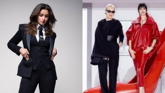 At the Chetak Screen Awards 2026, Alia Bhatt hosted in a custom Gaurav Gupta Couture three-piece tuxedo. The pitch-black set featured razor-sharp satin lapels and exaggerated power shoulders that framed her silhouette with regal precision. By pairing a cinched waist with dramatically flared trousers, she balanced traditional masculine tailoring with a sculptural, feminine flare that felt entirely 2026.