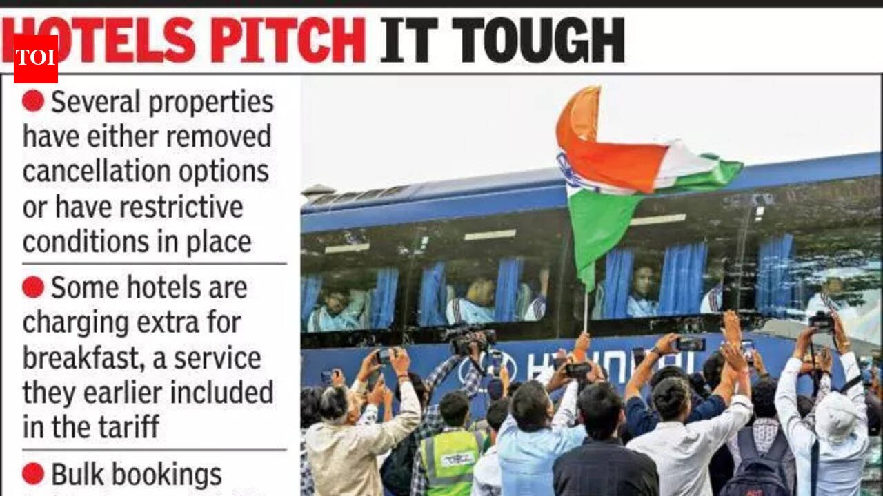 Ahmedabad: While India’s economical bowling earned them a seven-wicket win over England in the ICC Men’s T20 semi-final, the victory’s result on the city’s hospitality industry is anything but economical. The anticipation of a cracker of a final against the Kiwis has knocked hotel tariffs out of the park, and in just 12 hours of India’s entry into the final, also to be hosted in Ahmedabad, hotels have recorded 80% occupancy.A night’s stay at a hotel in Motera, managed by a popular brand, was listed for Rs 1.16 lakh on its website. When contacted, the hotel quoted a different tariff — rooms offered at around Rs 80,000 plus 18% GST. A hotel near Keshavbaug quoted Rs 80,000 for a one-night stay, while properties on Sindhu Bhavan Road are charging anywhere between Rs 56,000 to Rs 76,000, depending on room category and availability. Even budget options are no longer ‘budget’. The lowest rates cited was around Rs 15,000 for a non-star hotel in the Satellite area, a level that is significantly higher than typical weekend pricing for similar properties. In upscale residential-commercial pockets such as Judges Bungalow, a room that usually costs around Rs 6,000 with breakfast is now being offered for the match weekend at Rs 20,000 — without breakfast. Customers are also facing tougher payment and cancellation terms. A prospective guest who called up several hotels was told that an advance payment was required and that refunds were not possible. This marked a shift from standard online booking practices, where many hotels typically allow cancellations until close to the check-in time. For the match weekend, several properties have either removed cancellation options entirely or applied restrictive conditions. Hospitality industry representatives said the surge is driven by demand from fans who have secured tickets to the final and are travelling down. Narendra Somani, president, Gujarat Hotels and Restaurants Association, said most of the city’s inventory was already committed. “Currently, room rates are Rs 15,000 to Rs 80,000 and can cross Rs 1 lakh because more demand is coming in with people getting tickets. March generally remains slow, but the World Cup final helped hotels achieve the average for the month,” Somani said. A staff member at a five-star hotel said the property was sold out, attributing the lack of availability to bulk bookings. With large blocks of rooms taken up in advance, remaining inventory across the city tightened, pushing up prices for last-minute travellers. Business groups expected the match to generate spillover gains beyond hotels. Sanjeev Chhajer, chairman of the travel and tourism taskforce at the Gujarat Chamber of Commerce and Industry, said visitors are arriving from across India and overseas. “The city is going to witness a huge business opportunity in terms of hotels, restaurants, tourism, and transportation. Restaurants and the handloom and handicrafts segment will also see good business,” Chhajer said.
