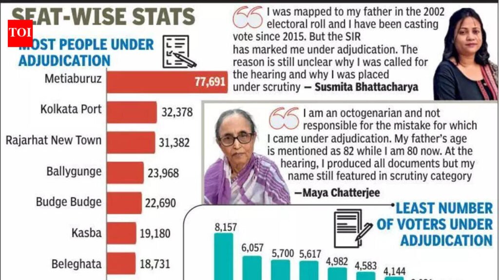 Kolkata: Before the publication of the supplementary list, voters placed under adjudication across the city have already started calling up their booth-level officers (BLOs) and enquiring how to check their names. All these voters, who have been exercising their franchise for long, are in anxiety over whether their names would make it to the electoral roll following judicial scrutiny. Some of them have decided to stay glued to the Election Commission of India‘s website to access the list to know the final outcome of their SIR battle.Multiple meetings chaired by the Calcutta High Court Chief Justice Sujoy Paul, first with the state police top brass and then with the Bengal CEO Manoj Aggarwal, were held on Thursday ahead of the publication of the first supplementary voter list for a section of 60 lakh Bengal voters placed under “judicial scrutiny”. The meetings were aimed at taking stock of the law and order arrangements.The EC earlier indicated that the first supplementary list will be published on Friday or Saturday. The EC has not made it clear where the voters can access it. Earlier on Thursday morning, Bengal home secretary Sanghamitra Ghosh, DGP SN Gupta, Kolkata Police commissioner Ajay Nand and ADG (law and order) Ajey Mukund Ranade met Chief Justice Paul for nearly 30 minutes. Around noon, these officers, along with chief secretary Dushyant Nariyala, called on Governor RN Ravi for 30 minutes. Later in the evening, Aggarwal too met the CJ.Gouri Aich, an elector from Bhowanipore Assembly constituency, was told during her hearing at Survey Building that her logical discrepancy would be sorted out against the documents she submitted. “On Feb 28, I found that my name was under adjudication and the BLO could not tell me the reason. Since the BLO is the only link person for the SIR exercise, I called her up this morning to know about the supplementary list that may be published on Friday. The BLO assured me of informing me if she finds my name there,” said Aich.Anubhav Das, an MBBS student at SSKM and a resident of Ballygunge, has decided to keep an eye on the ECI’s website for the supplementary list. “I did not receive any hearing call regarding SIR logical discrepancy but found my name under adjudication. The BLO collected passport copies of me and my parents for scrutiny. Though there is no clarity as to when the supplementary list will be out, I will keep an eye on ECI’s website to get the supplementary list,” he said.Soma Sadhukan, an voter under adjudication from Alipore, said, “I am living in the city since 1961 but this time I could not clear the SIR test. I am waiting for the judicial scrutiny to approve me as an eligible voter and I am waiting for the supplementary list.”