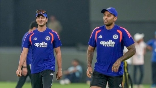 Abhishek Sharma and captain Suryakumar Yadav during a practice session before T20 World Cup 2026 match between India and South Africa (PTI)