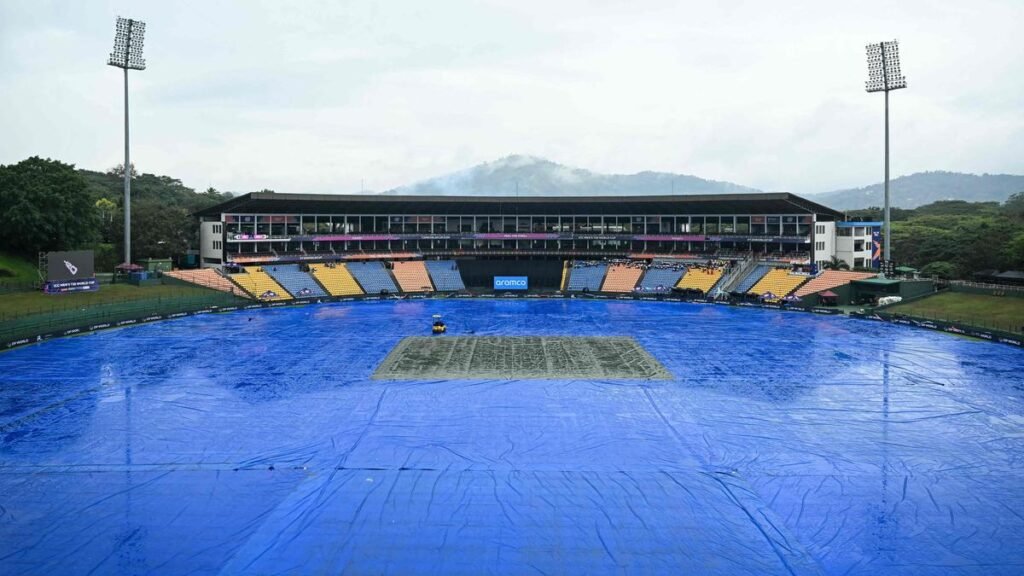 The entire ground remains covered in tarpaulin in the 2026 ICC Men’s T20 cricket World Cup group stage match between Zimbabwe and Ireland at Pallekele International Cricket Stadium in Kandy on February 17, 2026.
