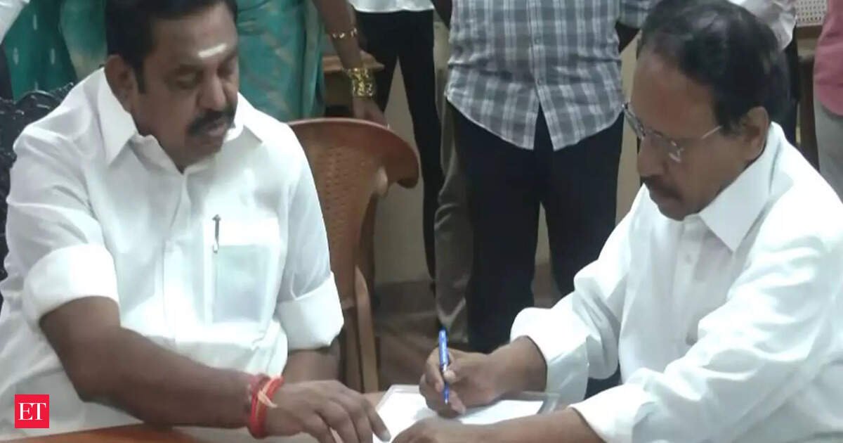 Chennai: All India Anna Dravida Munnetra Kazhagam (AIADMK) Rajya Sabha candidate M Thambidurai filed his nomination at Tamil Nadu Secretariat in the presence of party General Secretary Edappadi K Palaniswami.