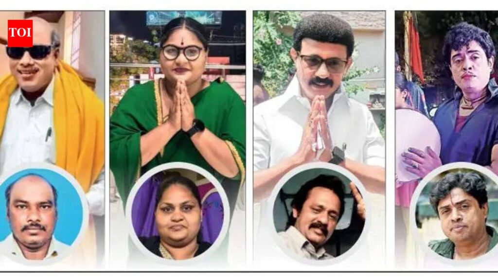 Chennai: M R Gopalakrishnan, a 46-year-old priest from West Mambalam, does not look anything like M G Ramachandran. But give him 20 minutes, a dollop of make-up, a wig, fur hat and bright clothes and he transforms into the late chief minister and matinee idol, rosy-cheeked and camera-ready to hit the campaign trail. You can spot him rousing crowds at AIADMK rallies, taking selfies with fans, and blessing those who fall at his feet. “I have studied MGR’s gestures and swagger,” says Gopalakrishnan, a former child artiste. “MGR was my role model. That’s reason enough to play him at rallies.”As election campaigns near their end, a parallel cast of lookalikes such as Gopalakrishnan is clocking longer hours than most candidates. Some bear little to no resemblance to their ‘star’ counterparts but can turn into them in the blink of an eye.With leaders such as M K Stalin unable to be everywhere at once, these stand-ins fill the gap, not in voice or authority, but in appearance — from a reasonable distance. Most spend hours studying archival footage of leaders, to get the postures and smiles in place. They may earn just 3,000 a day, but they linger in memories and phone galleries.Visalakshi from Saidapet conjures up her version of the late AIADMK chief J Jayalalithaa replete with the little details — bindi, spectacles, netted hairstyle, light lipstick, wristwatch, stud earrings and a plain sari. She also mimics her gait, including the slight hunch. “People remember her final years. That’s the look I recreate,” says the 40-year-old. Visalakshi travels to constituencies such as Velachery and Tiruvallur, where reactions are immediate. “Some cry, others seek blessings, and party workers bring children to meet me.” But she doesn’t talk about it to her neighbours. “My neighbourhood roots for the DMK. How can I reveal that I play Jayalalithaa?”In Tirupattur, Samarasam has been ‘Kutty Karunanidhi’ for 18 years. All it takes, says the 48-year-old, to turn into Kalaignar is a base foundation, pancake powder, white dhoti, yellow shawl and sunglasses. “I cannot match his oratory skills, but I can mimic them enough to read manifestos,” he says. When not in costume, he blends in. “I just wear a cap to hide my bald head when I’m off duty,” he says.Then there is Salem ‘Stalin’ Syed, a travel agent who plays chief minister Stalin. “People approach me with petitions and complaints” says Syed. “I used to play actor Rajinikanth. Then people said I look more like Stalin, even without makeup. So I switched.”