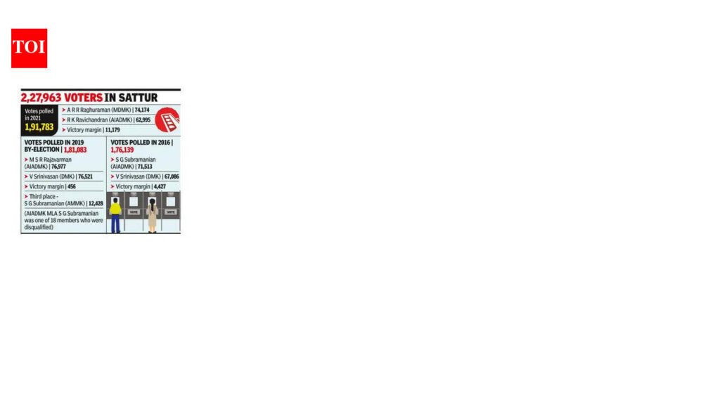 MADURAI: Sattur constituency in Virudhunagar district has become the cynosure of attention with BJP state president Nainar Nagenthran shifting to the AIADMK stronghold from his home turf Tirunelveli this time. He will face off against DMK’s A Kadarkarairaj, who lost to R B Udhayakumar in 2021.Theories of the reasons behind Nainar’s constituency shift include favourable caste arithmetic in Sattur, and a perceived dissatisfaction among minority community in Tirunelveli. A majority of voters in Sattur belong to the mukkulathor community, from which Nainar is too, followed by naickers, Kadarkarairaj’s community. BJP sources said they have a strong base in Sattur with booth committees formed for all 291 booths. Nainar has said he switched seats following a request from AIADMK for Tirunelveli seat.